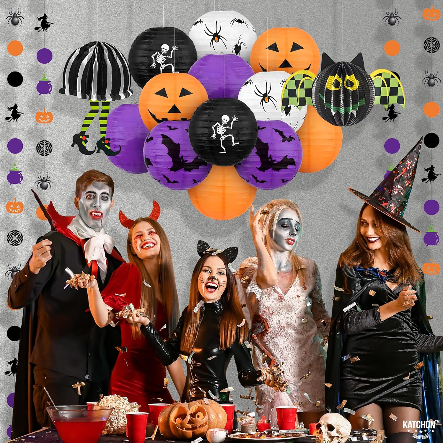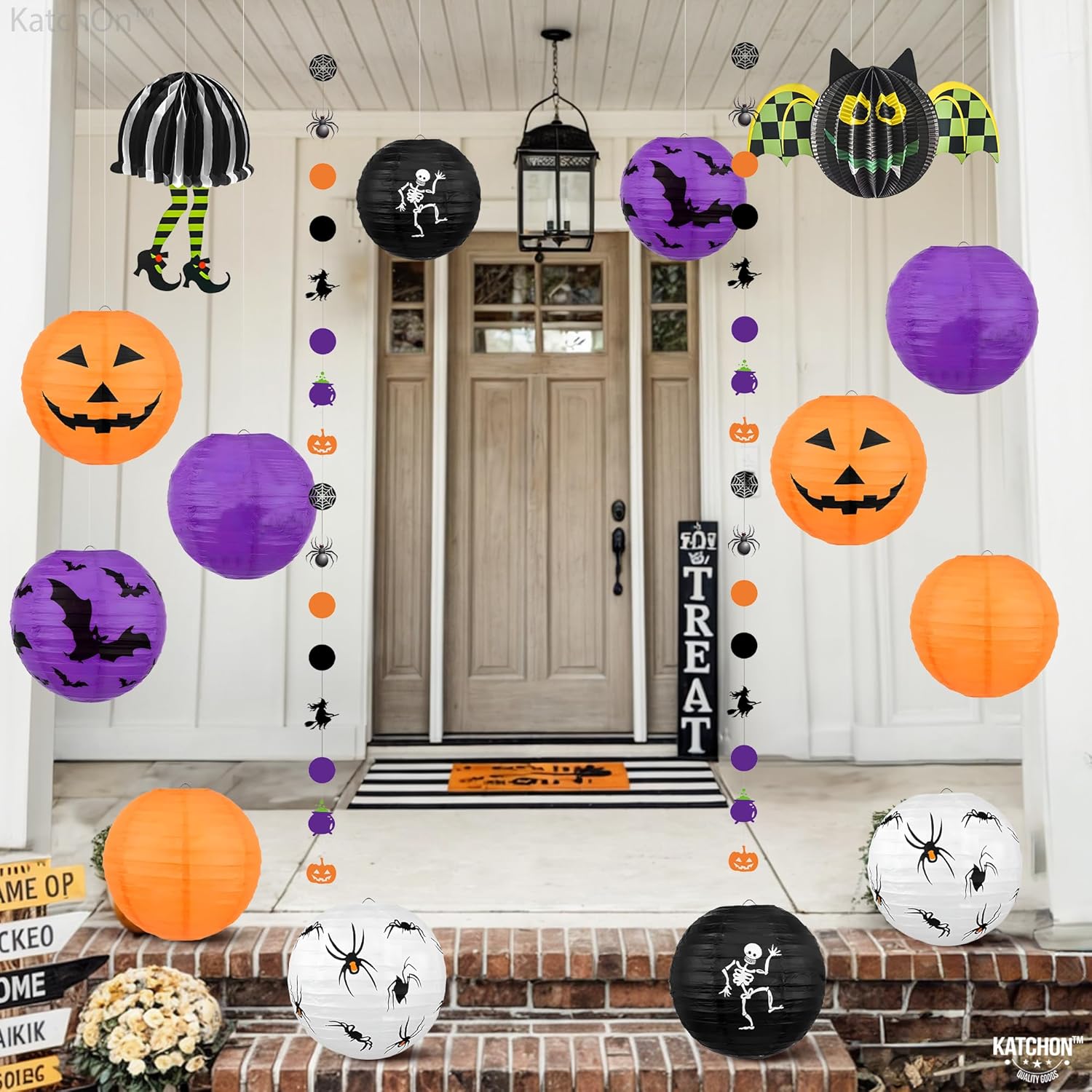 KatchOn, Halloween Hanging Paper Lanterns Set - Pack of 15 | Halloween Paper Lanterns, Halloween Honeycomb Decorations for Halloween Decorations | Halloween Garland for Halloween Party Decorations