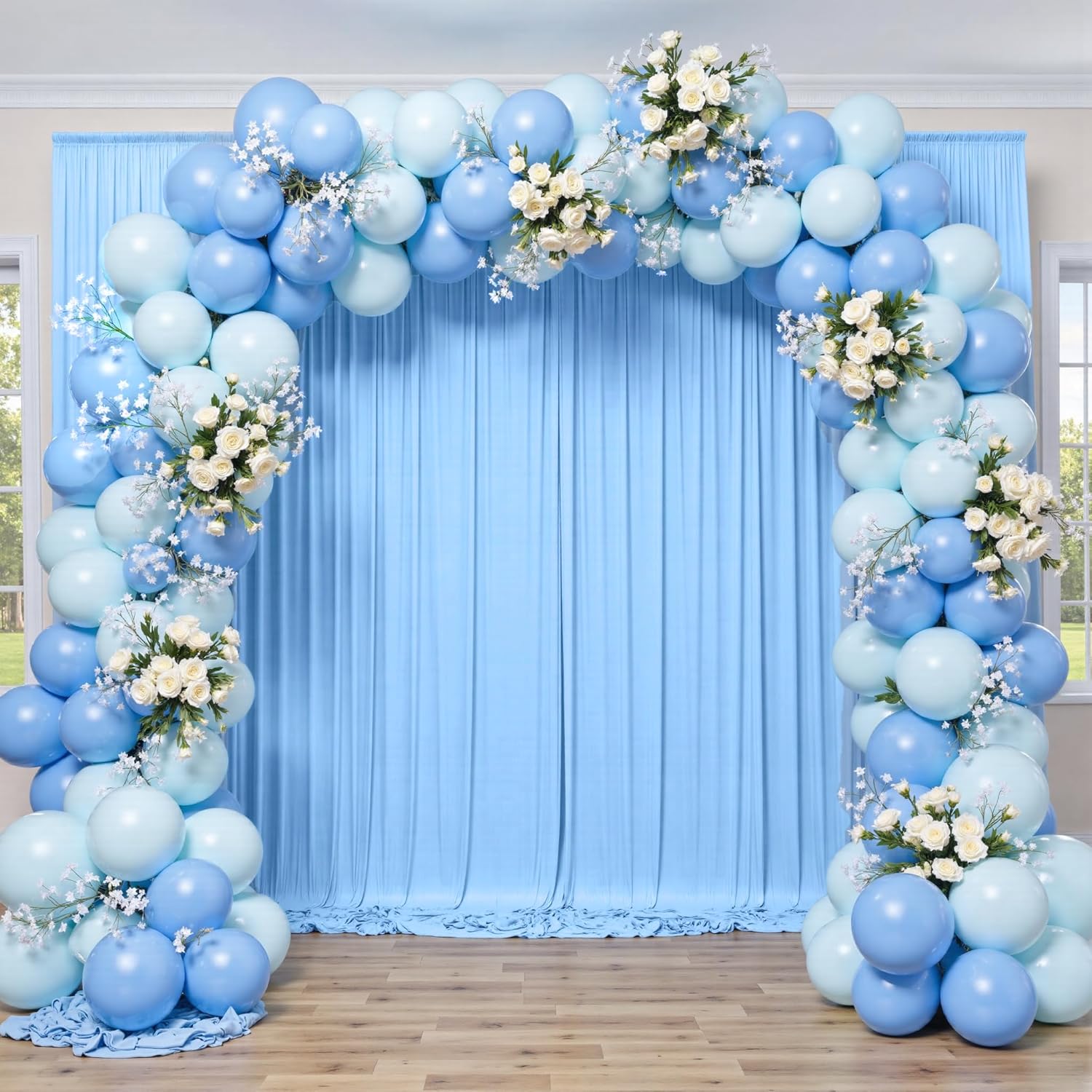 - Thick Blue Backdrop Curtain Panels: Your package will come with 10 panels photography backdrop drapes. Each baby blue background panels measures 5ft width and 10ft height.Entire backdrop curtain measures 50ft x 10ft.