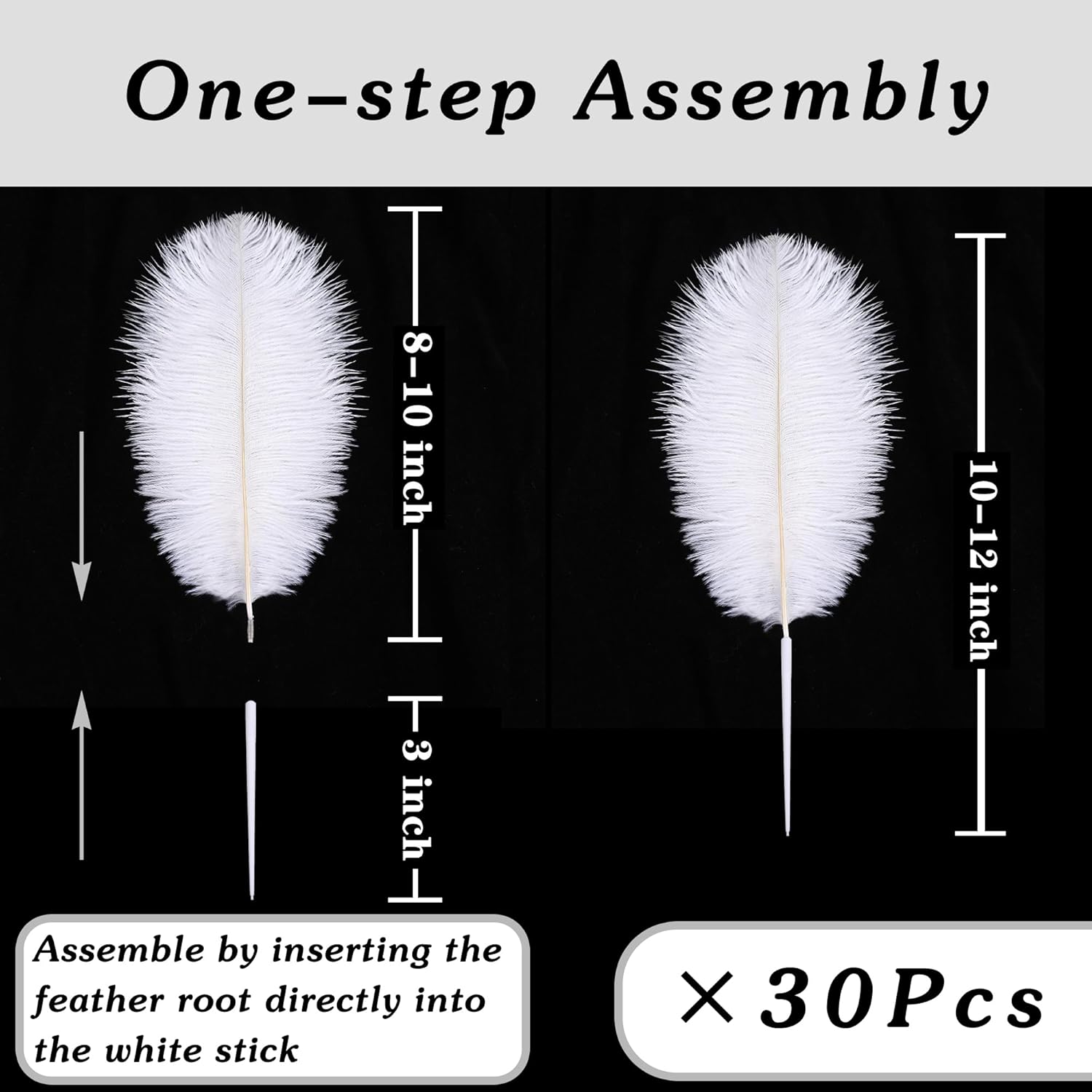 - Easy to Assemble: The craft ostrich feathers can be inserted directly into the white sticks without the need for tape to assist in fixing them, convenient and quick, get a better presentation with the same length of craft ostrich feathers