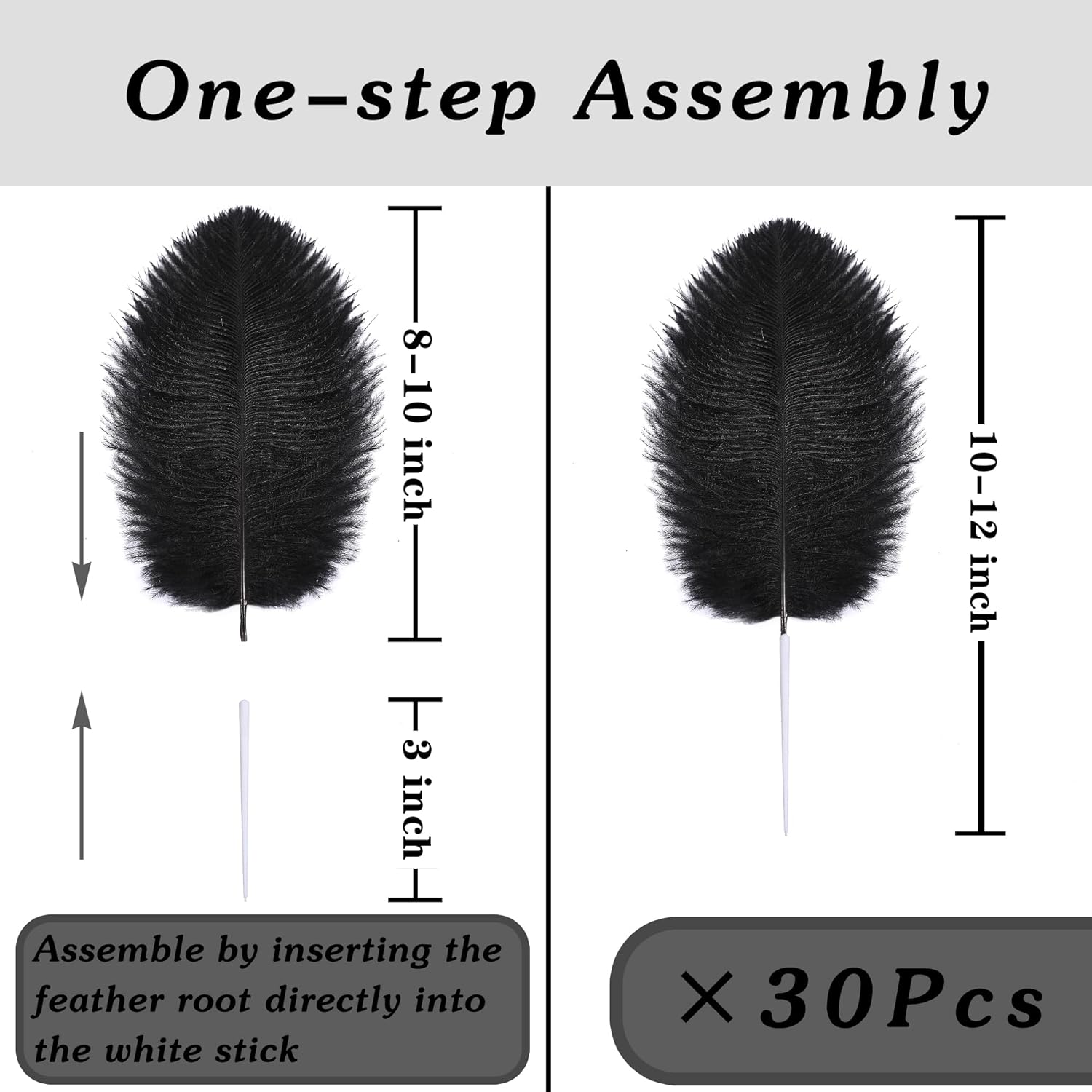 - Easy to Assemble: The craft ostrich feathers can be inserted directly into the white sticks without the need for tape to assist in fixing them, convenient and quick, get a better presentation with the same length of craft ostrich feathers