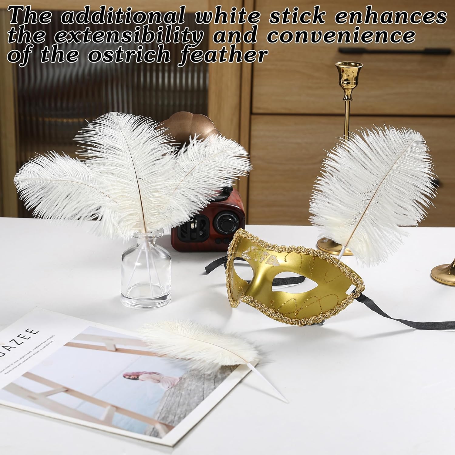 - Easy to Assemble: The craft ostrich feathers can be inserted directly into the white sticks without the need for tape to assist in fixing them, convenient and quick, get a better presentation with the same length of craft ostrich feathers