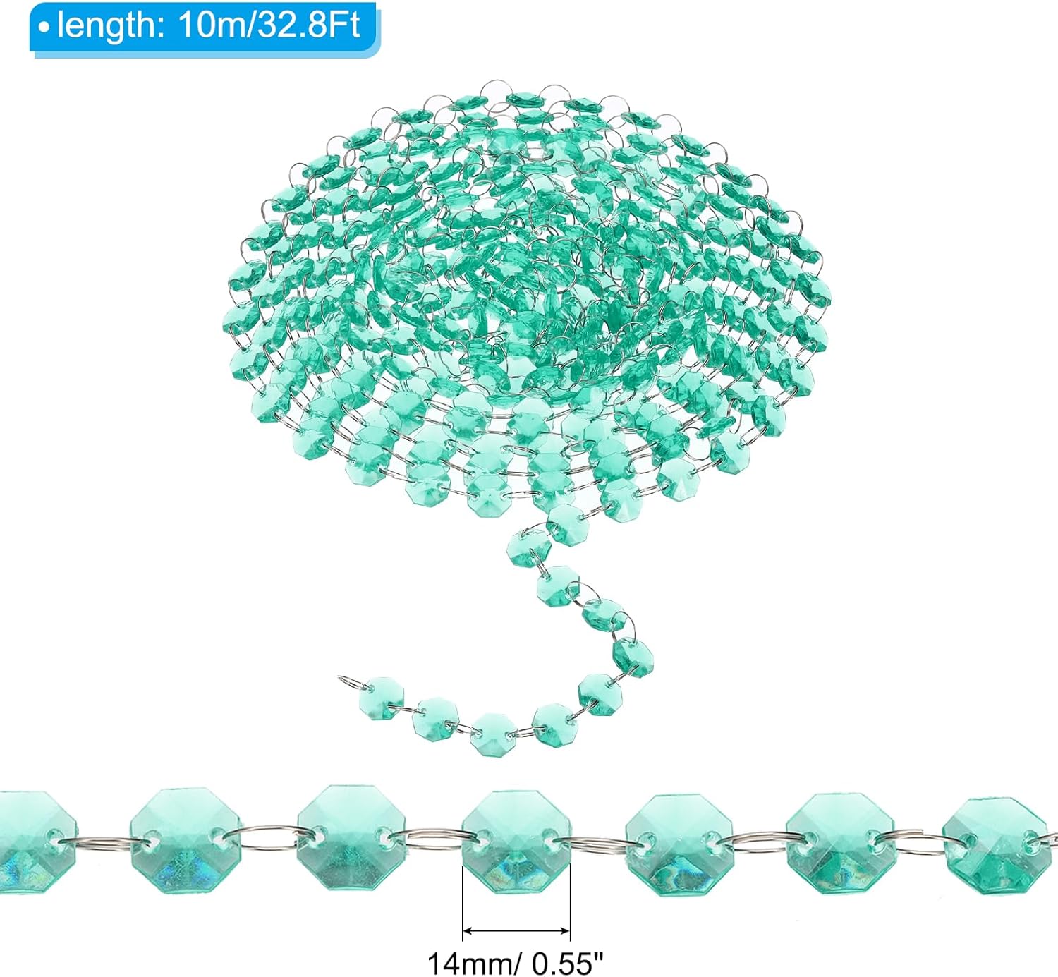 PATIKIL 14 mm Crystal Garland Strands, 32.8 Ft Acrylic Octagon Chandelier Bead Chains String for DIY Craft Wedding Party Home Decorative Jewelry Making, Blue