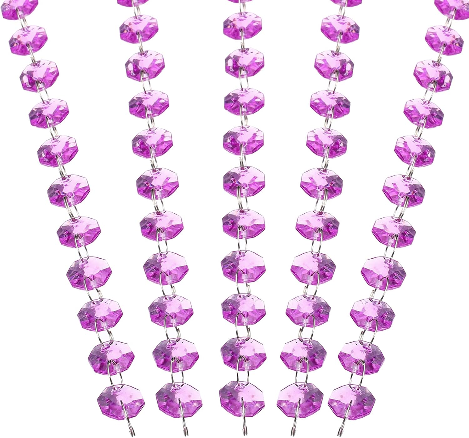 PATIKIL 14 mm Crystal Garland Strands, 32.8 Ft Acrylic Octagon Chandelier Bead Chains String for DIY Craft Wedding Party Home Decorative Jewelry Making, Purple