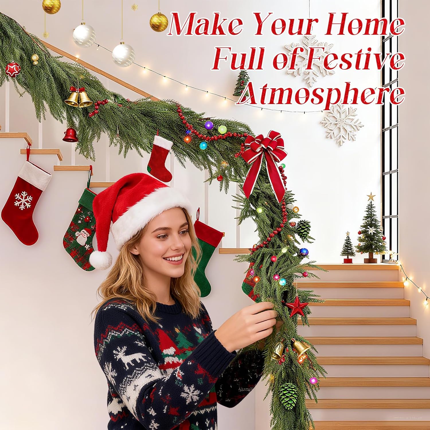 - MULTIPLE APPLICATIONS: While ideal for Christmas, this greenery pine garland's is timeless appeal makes it a great addition for various occasions. Use it to elevate your fireplace, staircase, dining table, or front door decor, and bring festive cheer to any celebration.