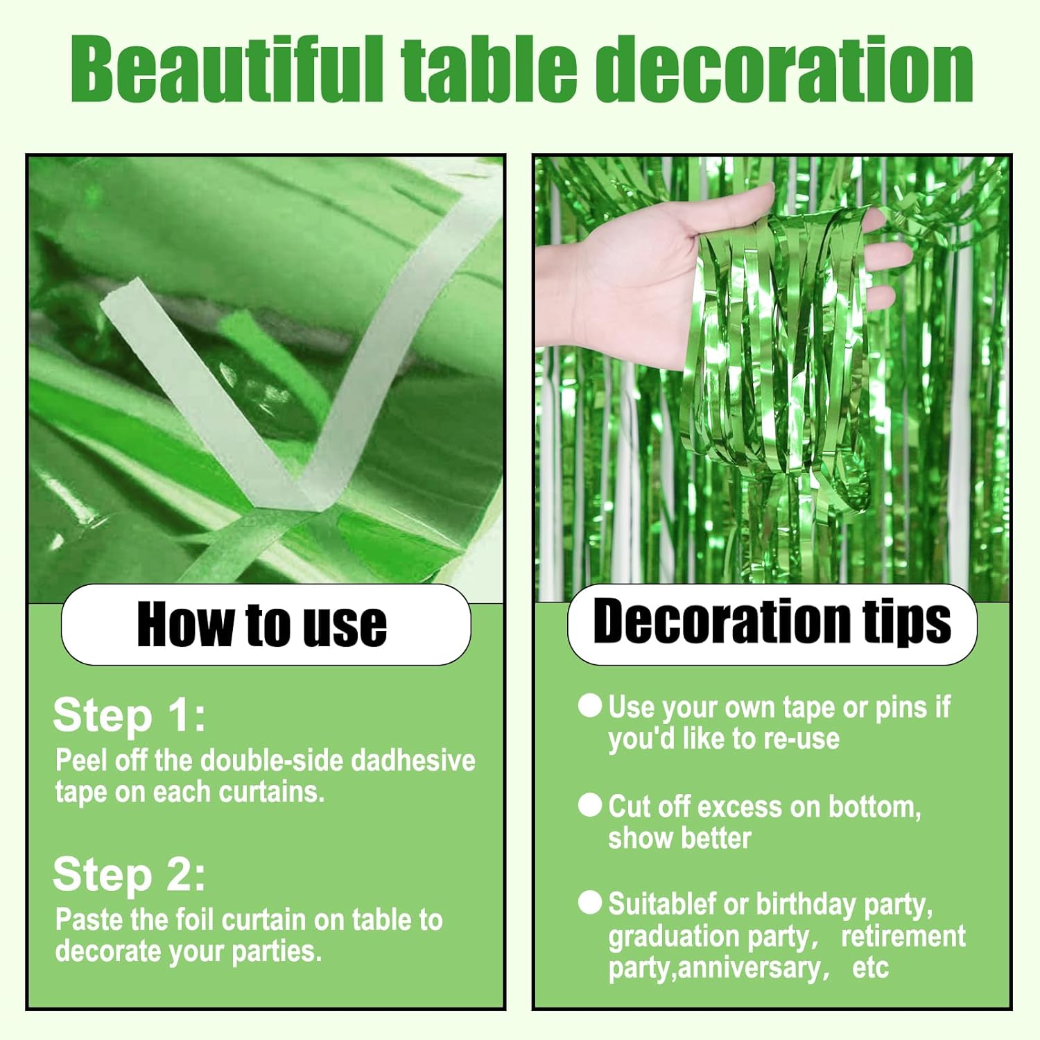 3 Pack 29 x108 Inch Light Green Foil Fringe Table Skirts Metallic Banner for Tinsel Streamer Garland Backdrop for Parade Floats Wedding Thanksgiving Birthday Christmas New Year Party Decoration