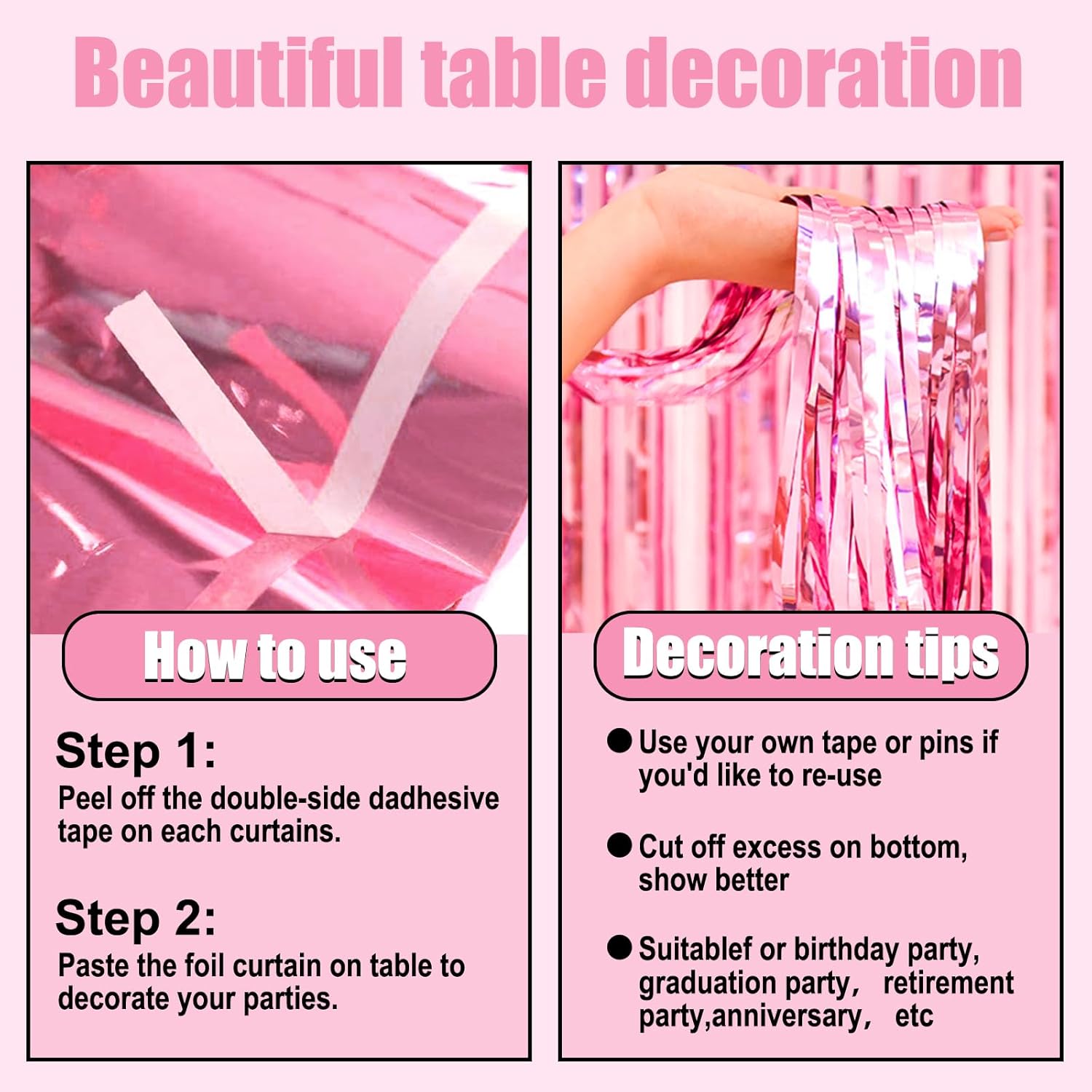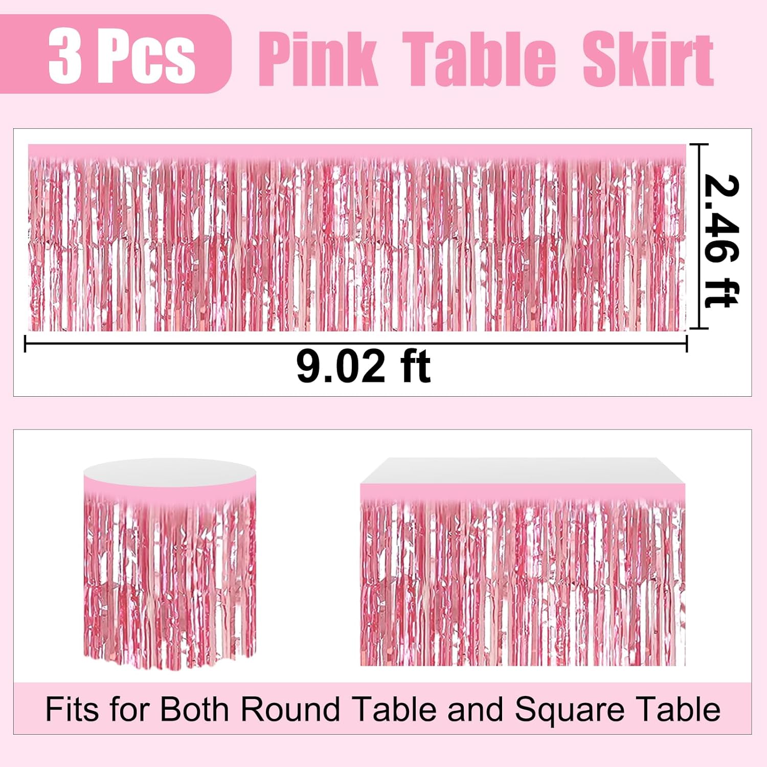 3 Pack 29 x108 Inch Pink Foil Fringe Table Skirts Metallic Banner for Tinsel Streamer Garland Backdrop for Parade Floats Wedding Thanksgiving Birthday Christmas Halloween New Year Party Decoration