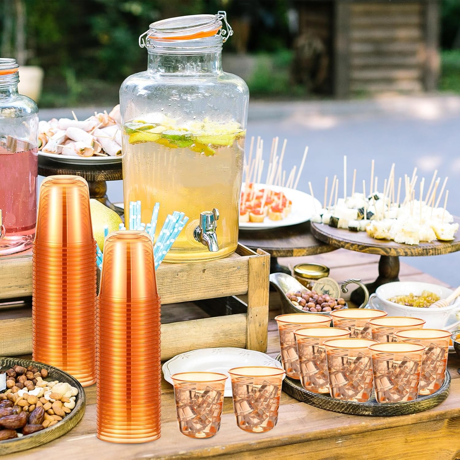 50pcs Disposable Stemless Glasses 12oz Crystal Plastic Wine Glasses Clear Classic Pet Cup for Meeting Weddings Birthdays Cocktail Christmas Party Supplies (Orange)