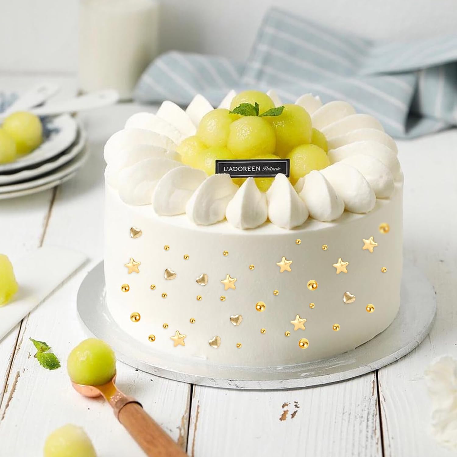 Kasvan Gold Pearl Sugar Sprinkles, 6 Sizes Mix for Cake Decorating, 230g/8.1oz, Ice Cream Toppings and Cookie Decorating, Wedding Party Chirstmas Supplies (Gold)