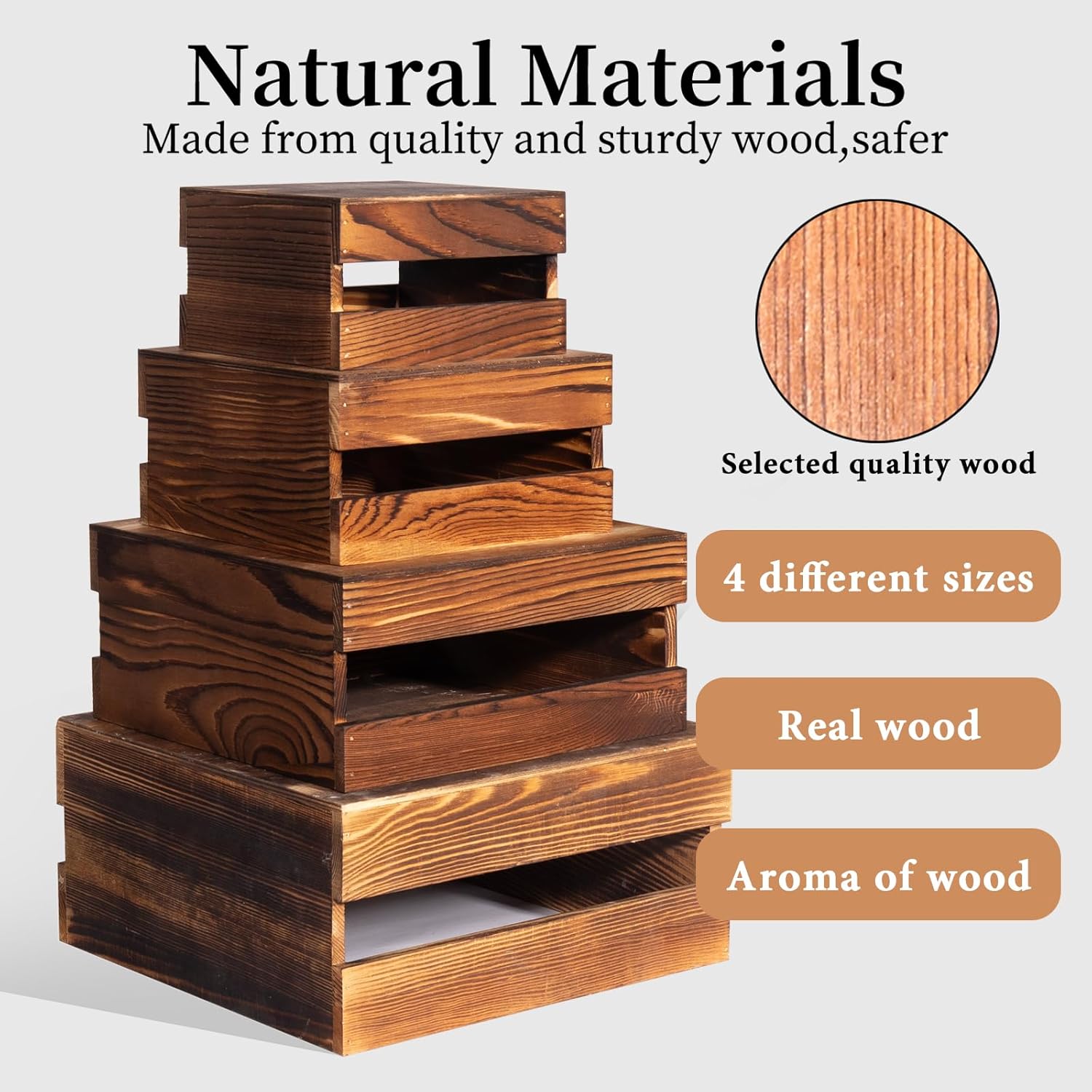 - Versatile Sizes for Layered Elegance: Our wooden stackable display boxes are carefully sized for multi-layer display, Large: 8.9x7.9x5.1 inches; Medium: 8.0x7.0x4.7 inches; Small: 7.2x6.2x4.3 inches; Extra Small: 6.4x5.4x3.9 inches, create stunning visual tiers and levels of display space that captivate every guest