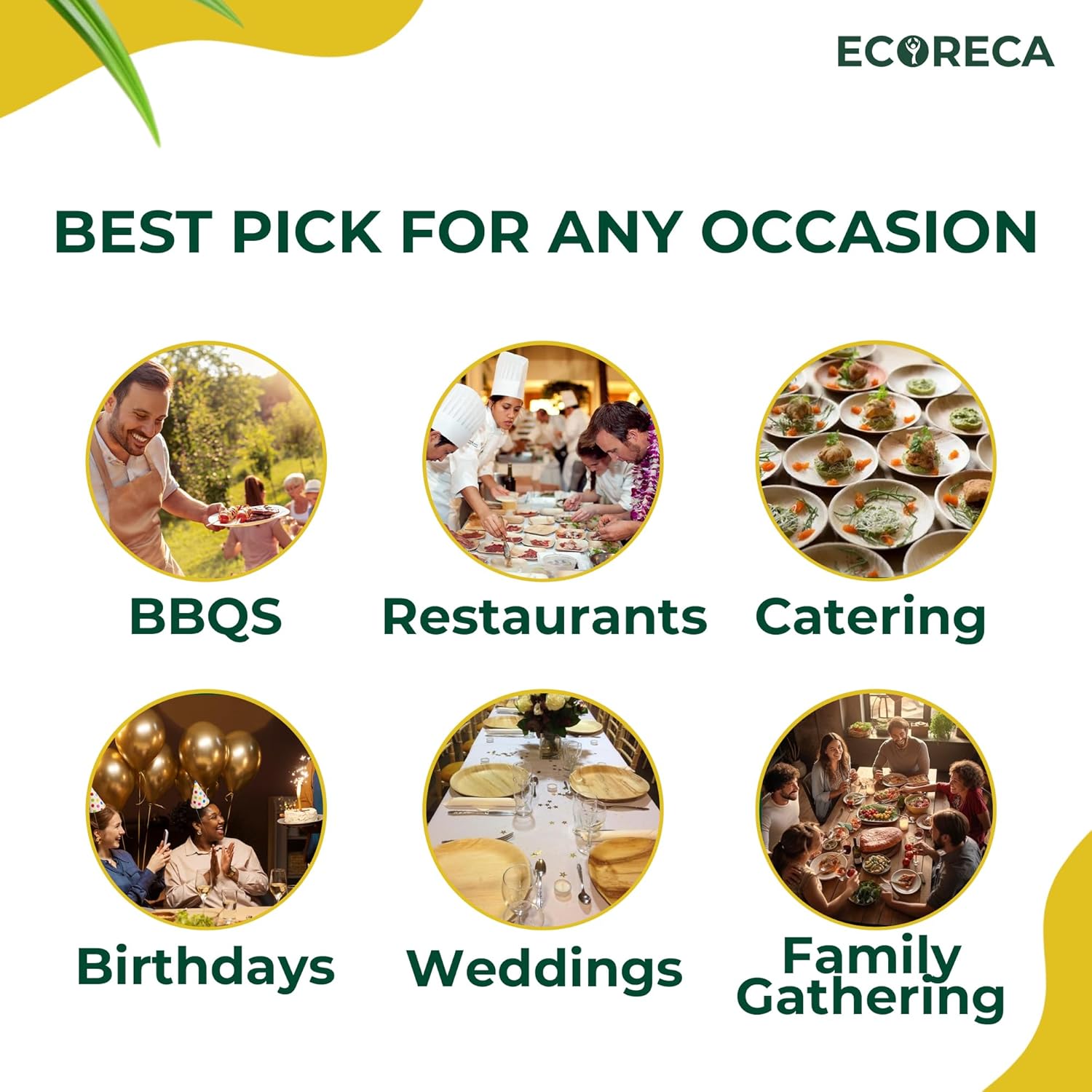 - [Chemical-Free & Food-Safe – These eco-friendly disposable plates are free from harmful chemicals, ensuring a safe dining experience. No BPA, just pure, natural, and Designed for safe dining, they decompose naturally without leaving any toxic waste, chemicals, dyes, or wax finishes. This ensures your food stays safe and free from toxins, making them ideal for all types of gatherings.