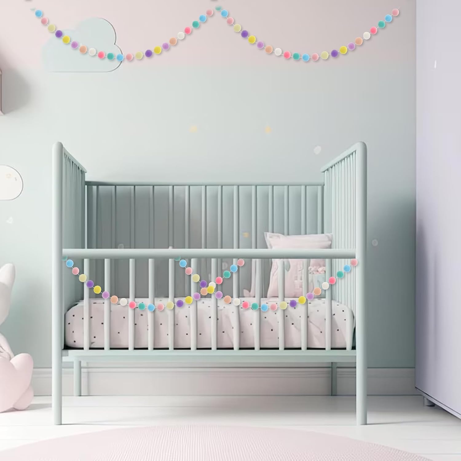 - 【Exquisite Design】The pom pom garland is matched with 10 colors, decorating your space with charming colorful tones, creating a harmonious display effect, adding a warm and sweet feeling to the space.