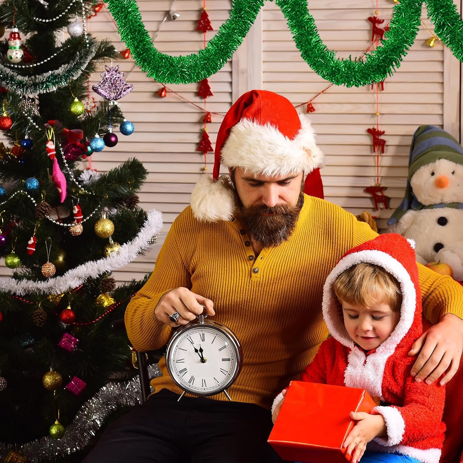 - Easy to Decor: Christmas tinsel garland include a soft, bendable wire inside, making them resistant to breakage and allowing you to shape them as you desire for your DIY christmas tree decorations, can use glue to stick them up, also use scissors to cut to the right length, twist them into various shapes as you like, then hang it anywhere you want