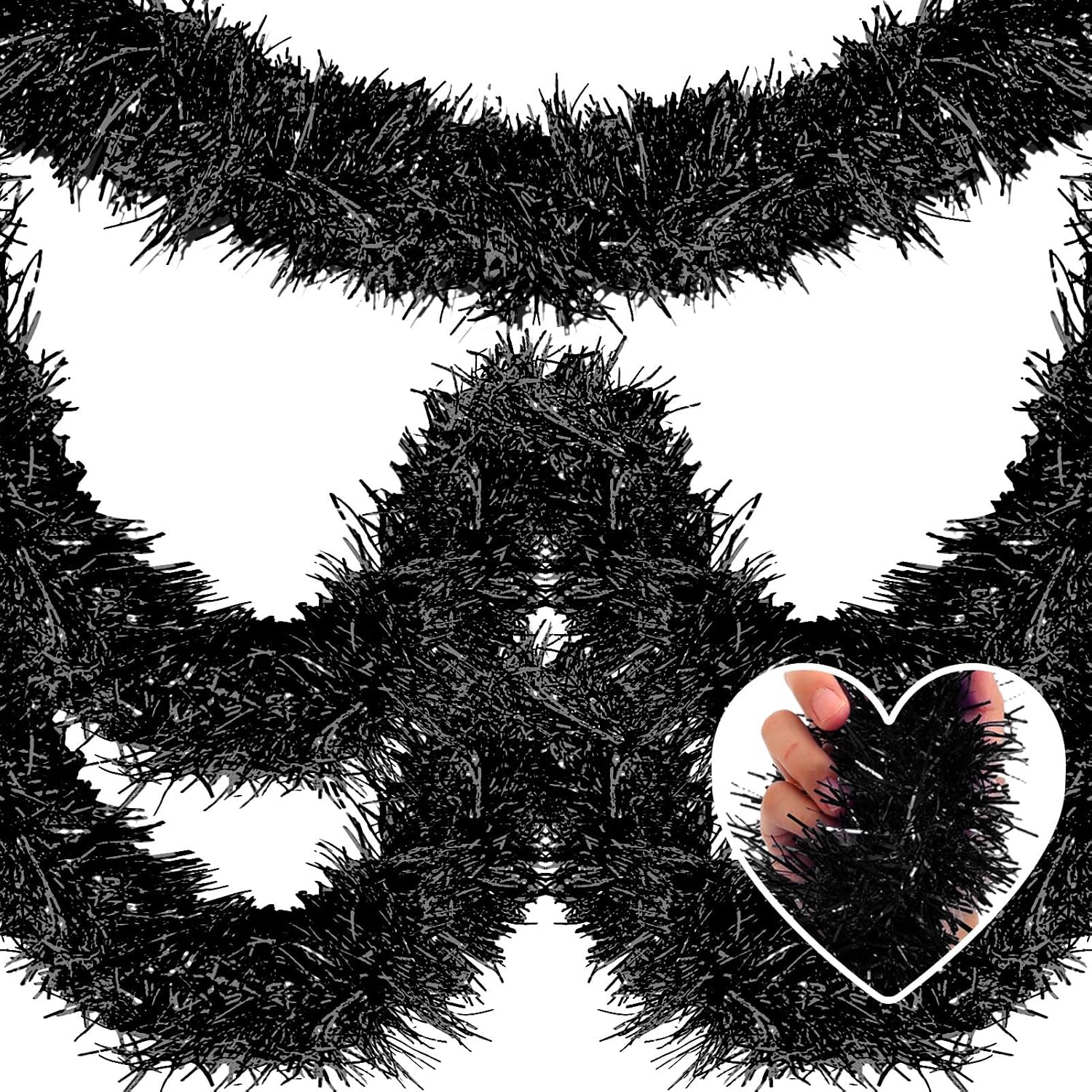 25 Feet Metallic Twist Tinsel Garland - Wall Hanging Backdrop for Parade Floats, Christmas Eve, New Year, Valentine's Day Parties (Black, 4in x 25ft)