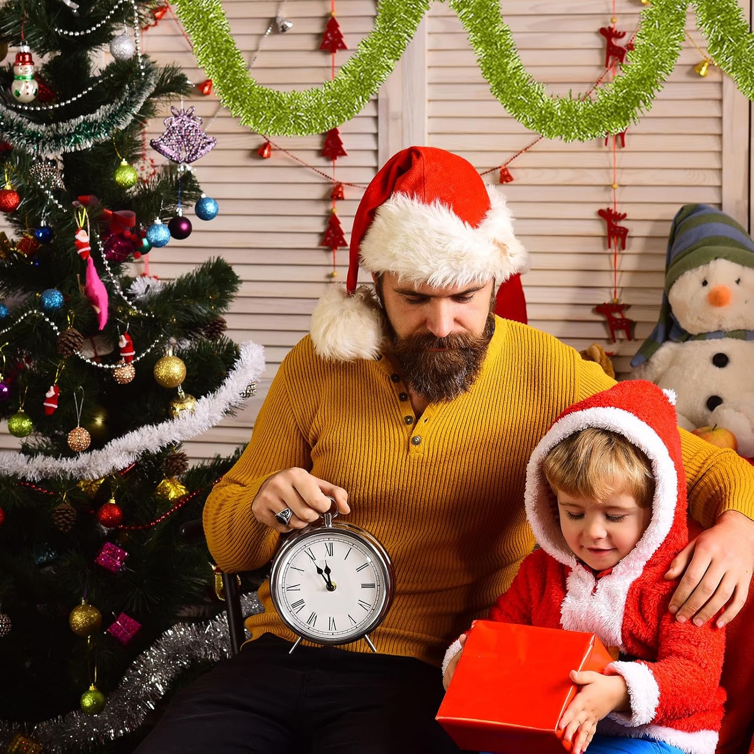 - Easy to Decor: Christmas tinsel garland include a soft, bendable wire inside, making them resistant to breakage and allowing you to shape them as you desire for your DIY Christmas tree decorations, can use glue to stick them up, also use scissors to cut to the right length, twist them into various shapes as you like, then hang it anywhere you want