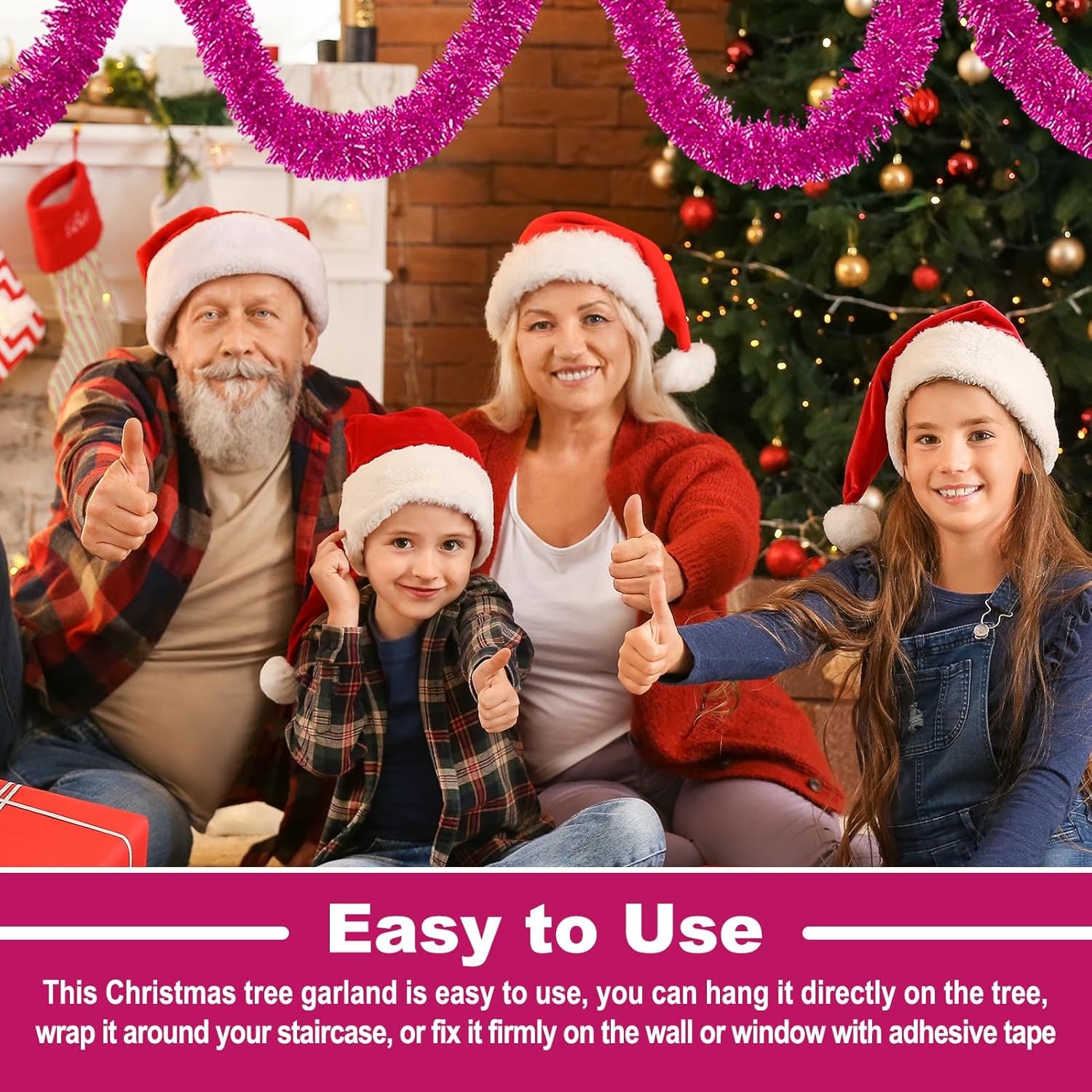 - Easy to Hang: Christmas tinsel garland include a soft, bendable wire inside, and easy to shape as different looks. You can also trim it into different sizes, twist them into various shapes as you like, or with the tape stick it on the wall, window, table, door, rail or any place you like, show the christmas glamour to make your party decoration for the home fun