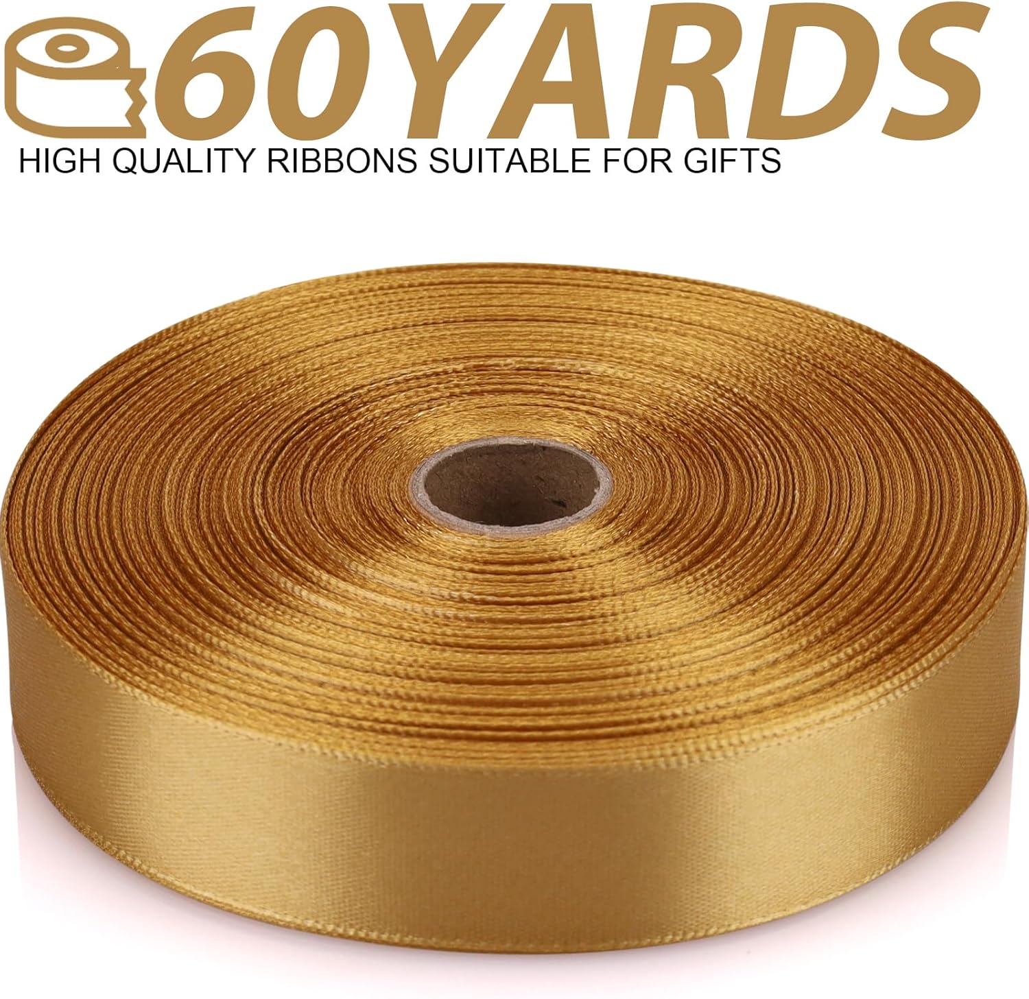 Champagne Gold Ribbon 7/8 Inch 60 Yards Satin Craft Ribbon-Single Face Polyester Ribbon for Handmade Roses,Gift Wrapping,Timeless Flower,Bouquets,Wedding and Party Decoration