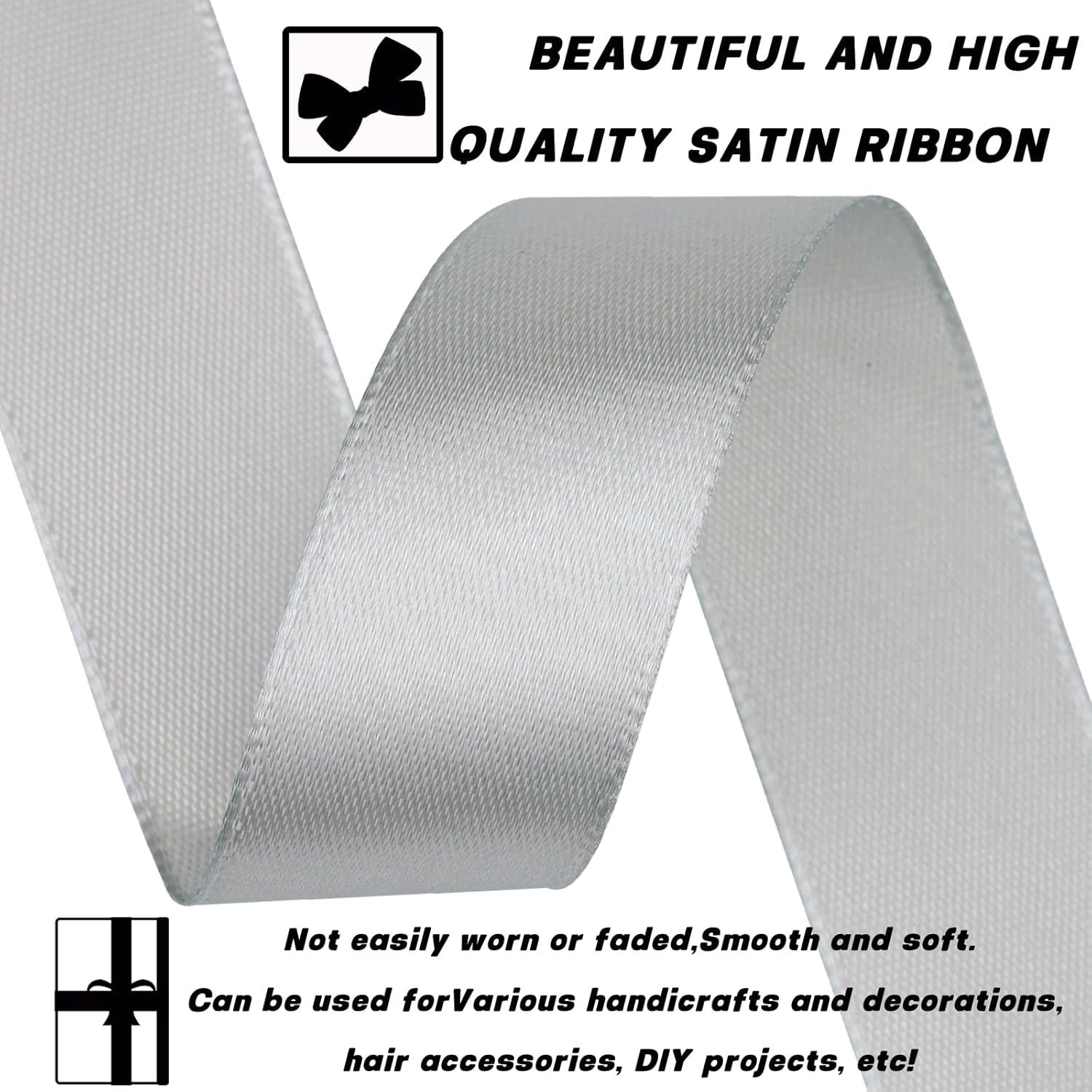 Silver Ribbon 7/8 Inch 60 Yards Satin Craft Ribbon-Single Face Polyester Ribbon for Handmade Roses,Gift Wrapping,Timeless Flower,Bouquets,Wedding and Party Decoration