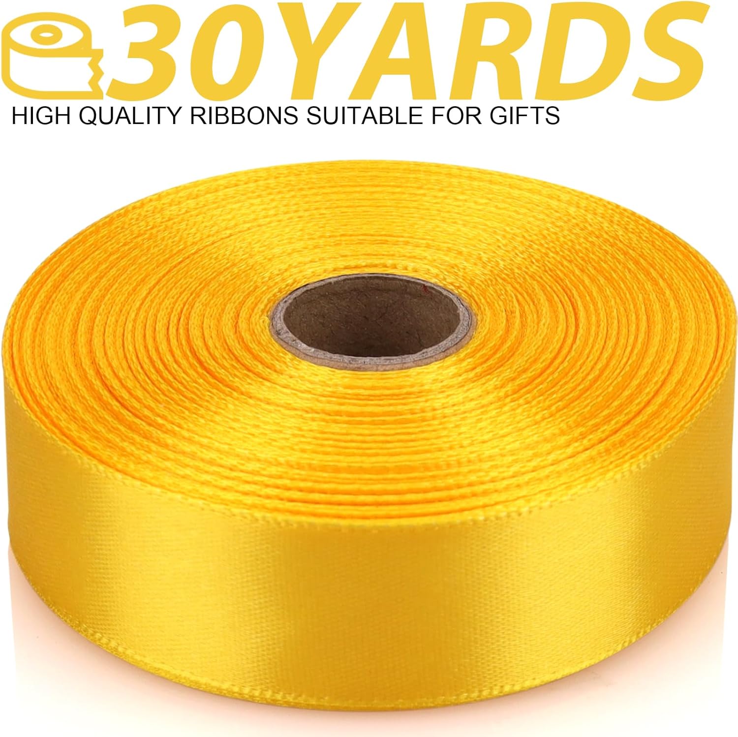Yellow Ribbon 7/8 Inch 30 Yards Satin Craft Ribbon-Single Face Polyester Ribbon for Handmade Roses,Gift Wrapping,Timeless Flower,Bouquets,Wedding and Party Decoration