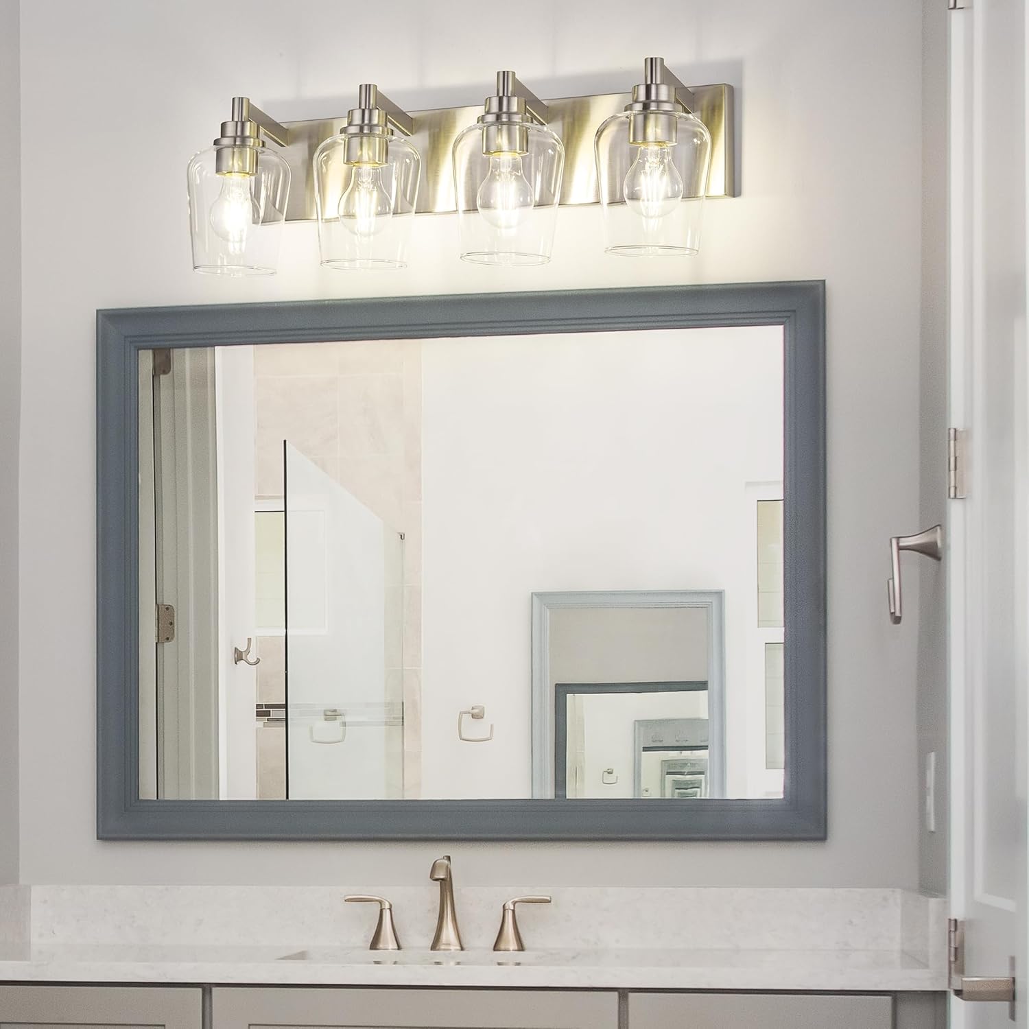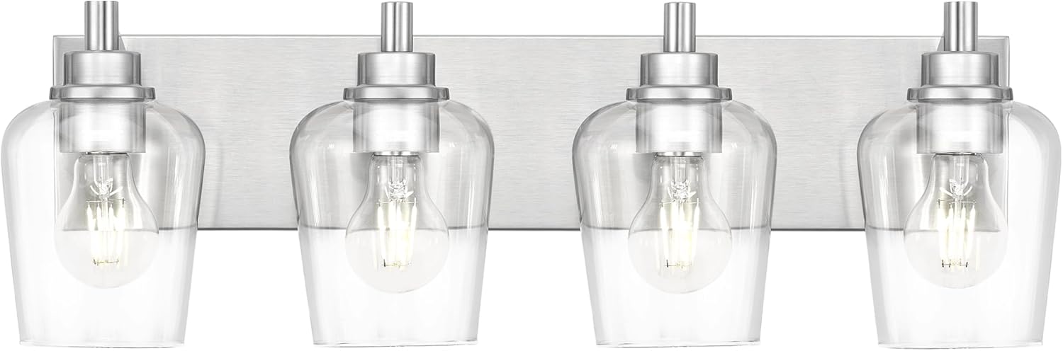 - Bulb Requirements: This brushed nickel bathroom lighting fixtures over mirror requires 4 E26 base bulbs, 60W Max. Fully dimmable when used with a dimmable bulb and dimmer switch (bulb and dimmer switch not included)
