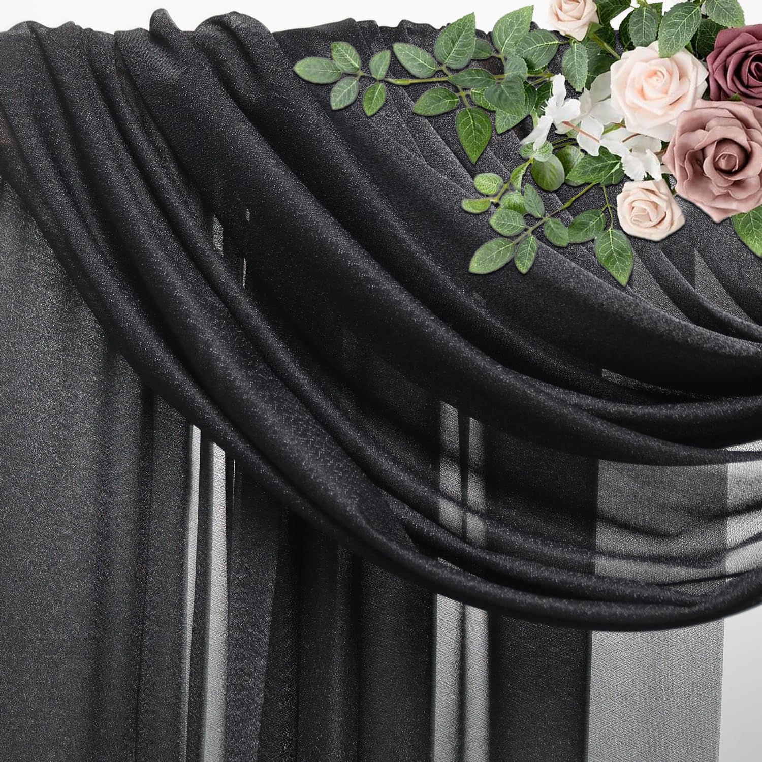 Wedding Arch Draping Fabric 2 Panels 28.7" x 20FT Black Sheer Chiffon Backdrop Drapes for Wedding Ceremony Birthday Party Bridal Shower Outdoor Decoration