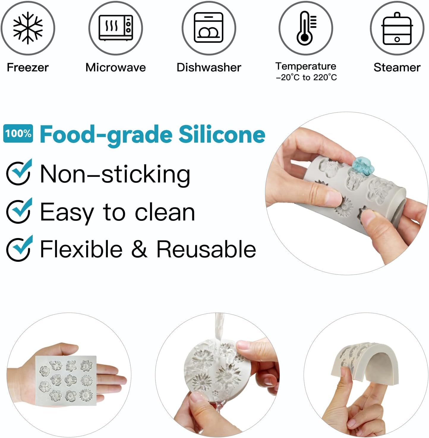 - Easy to Use and Clean: These flower silicone molds can handle temperatures from -4℉ to 392℉.They’re safe for the oven, microwave, freezer, and dishwasher. Cleanup is quick and easy, saving you time and effort