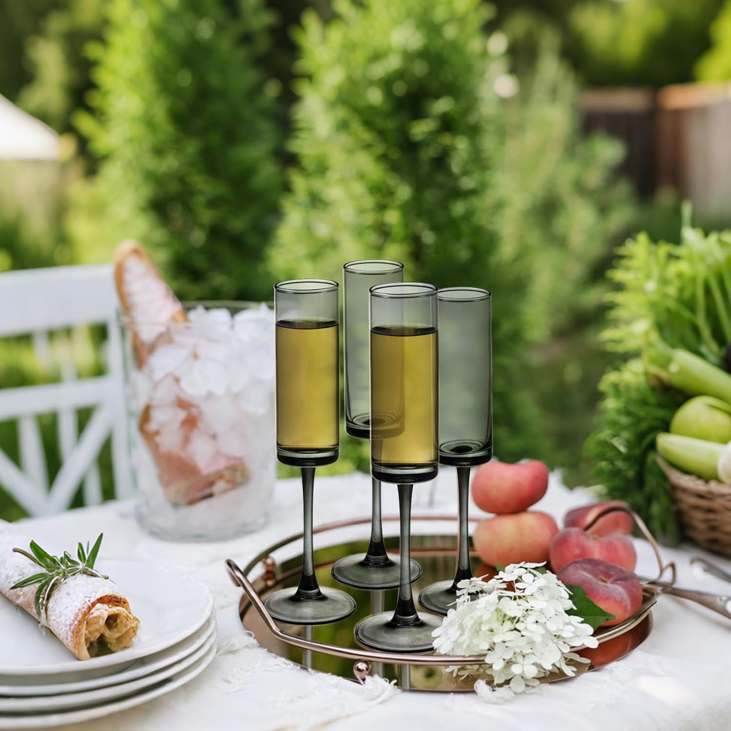 - 【Elegant Design】Made from high-quality crystal glass, Each flute has a clear, transparent body that allows the color of the wine to be fully appreciated. these flutes are durable and designed to enhance the flavor and aroma of your sparkling wine, providing an unique drinking experience.