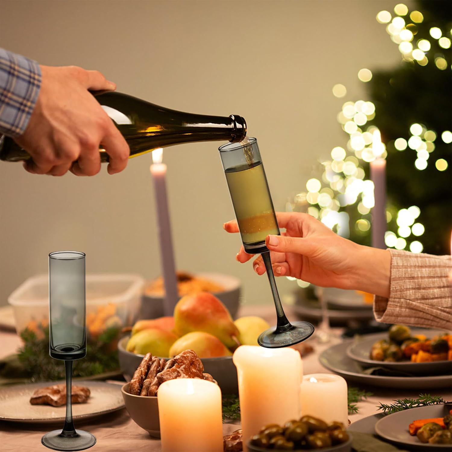- 【Champagne Flute Glass 】Each champagne flutes glass is hand-blown by an experienced master craftsman, by whom the edge is delicately polished and cut for a thin and smooth appearance to provide a better sense of touch for your lips and enhance the quality and flavor of the wine or champagne.