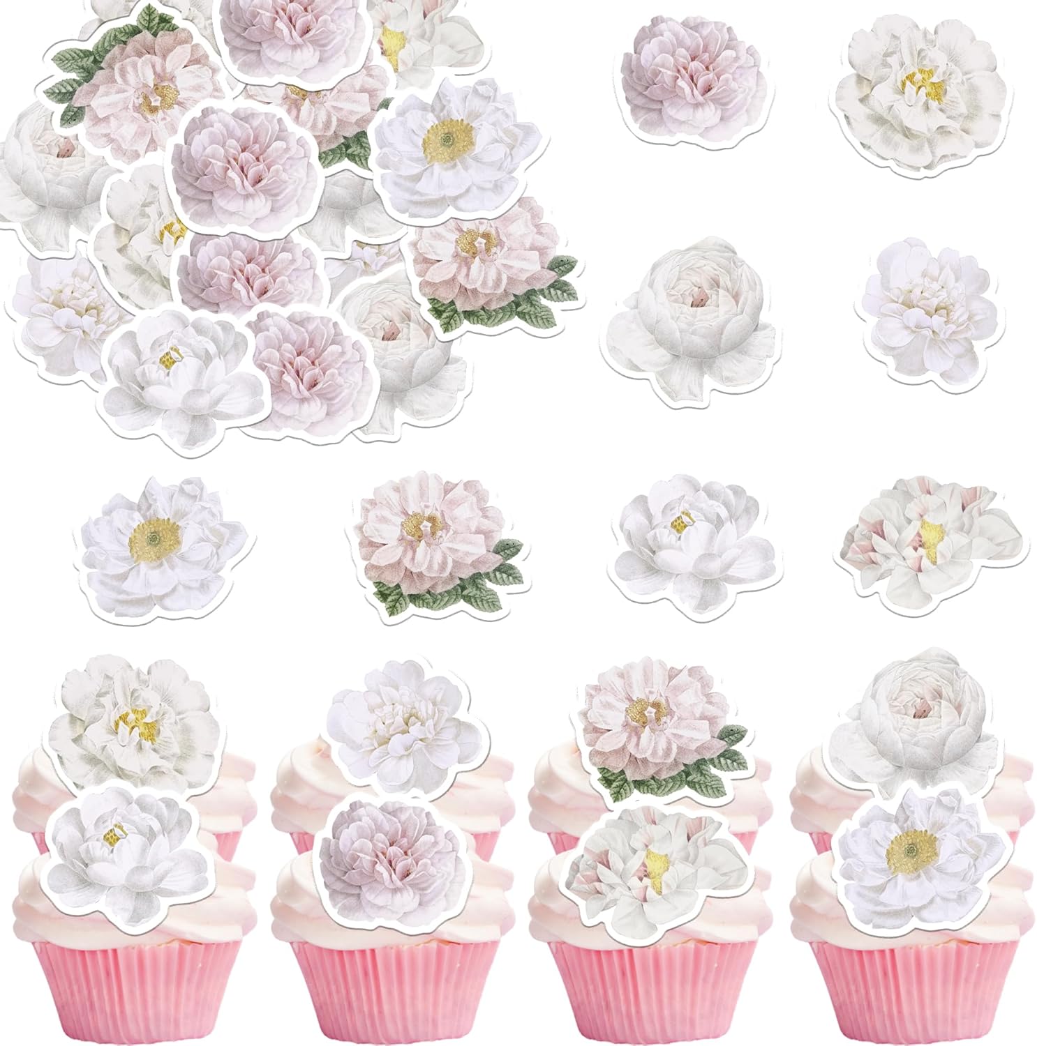 - Unique Style: Our edible flowers Cupcake Toppers are so lovely and with classical design, they can make your cupcake more attractive and bring the fun to your flowers party, Catch the guest's eyes. You can also apply them for ice cream, fruits, cookies and other desserts