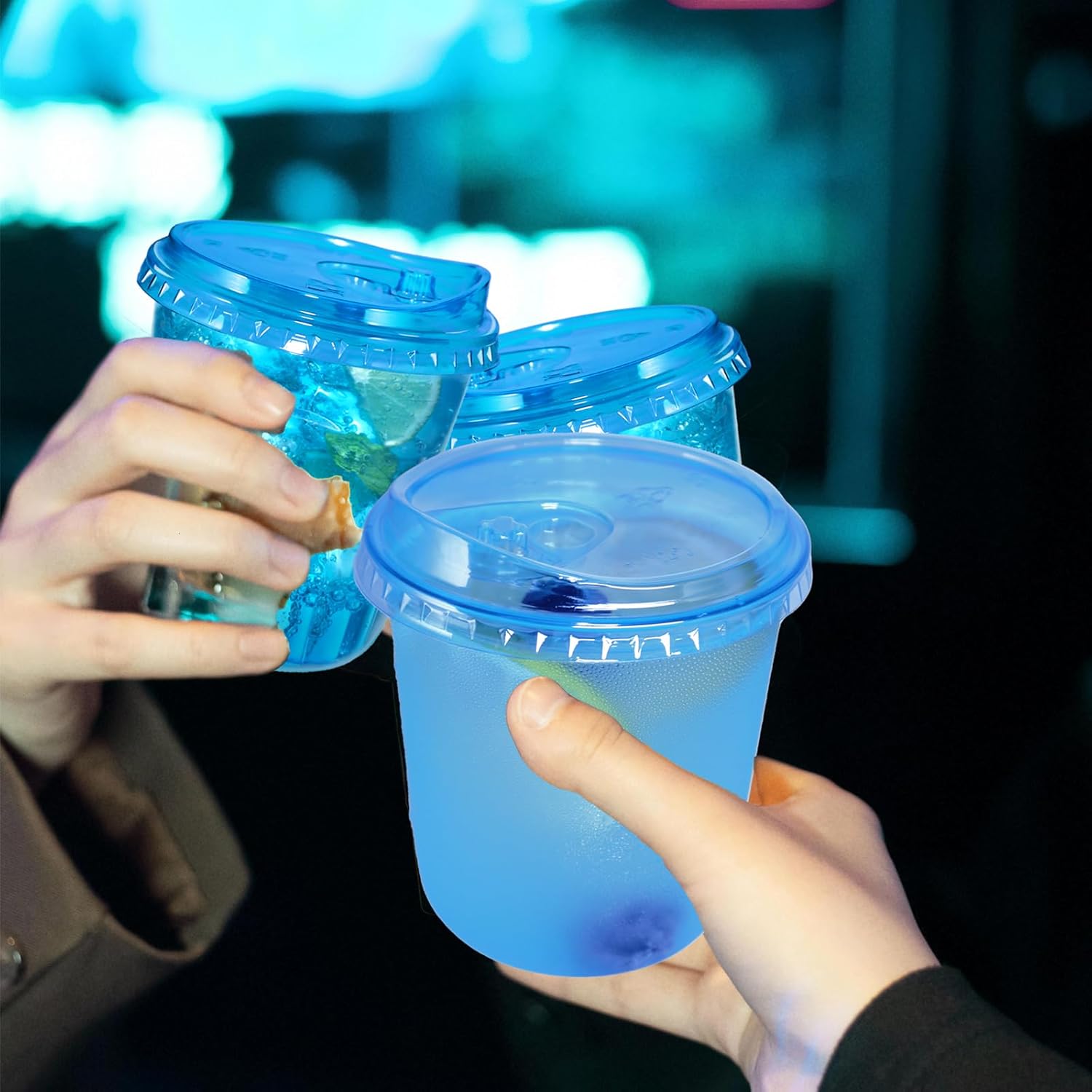12oz Disposable Stemless Glasses With Strawless Sip Lids,PET Disposable Drinking Cups,Clear Plastic Wine Glasses for Parties Birthday,Wedding,Meeting,Christmas Party Supplies. (100, Blue)