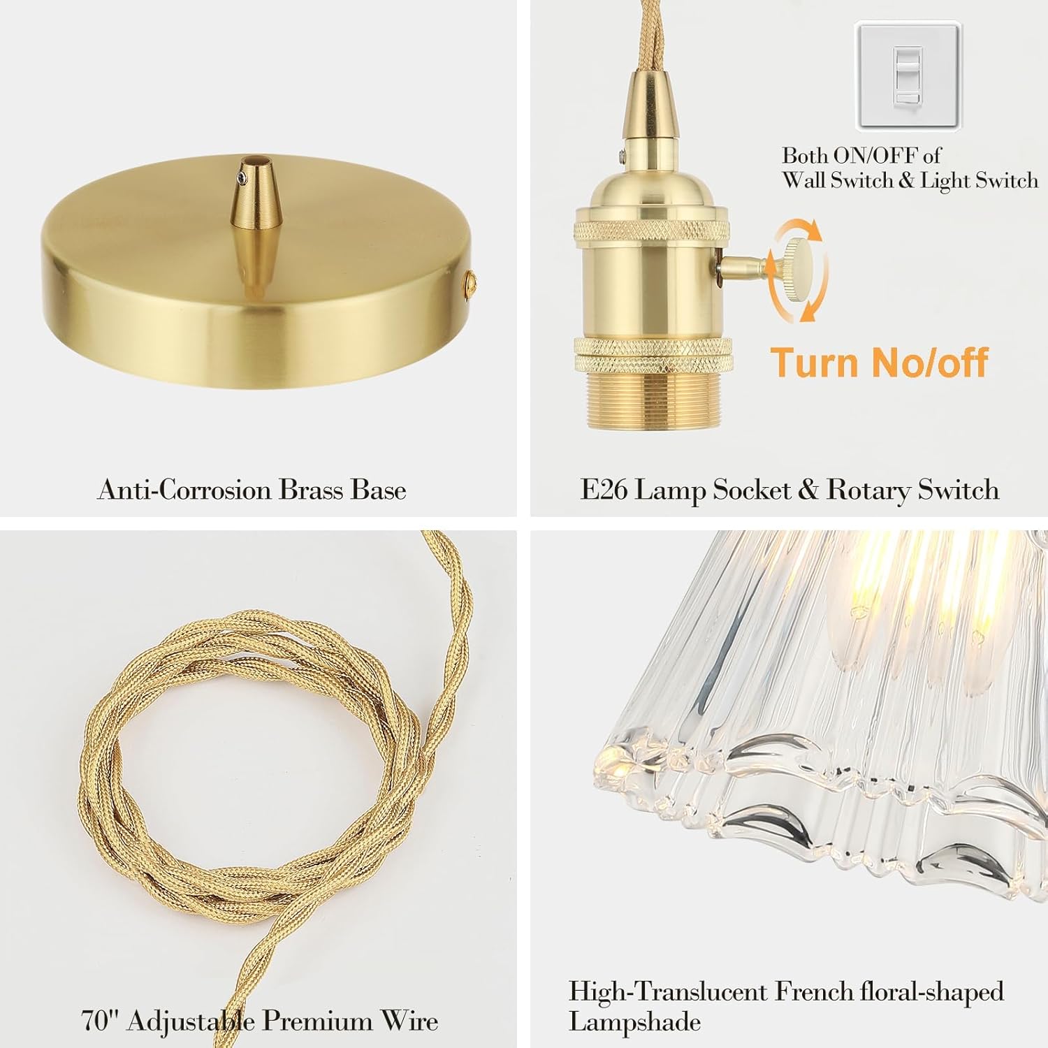 - 【Adjustable Hanging Lamp】 70-inch cord allows flexible height customization—perfect for illuminating kitchen islands, dining tables, or bedroom reading nooks
