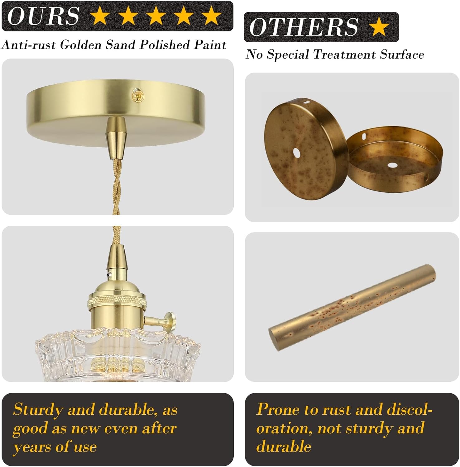 - 【Gold Hanging Light Fixture】 Golden polished brass frame with anti-tarnish coating ensures durability while adding a touch of vintage elegance to farmhouse or modern decor