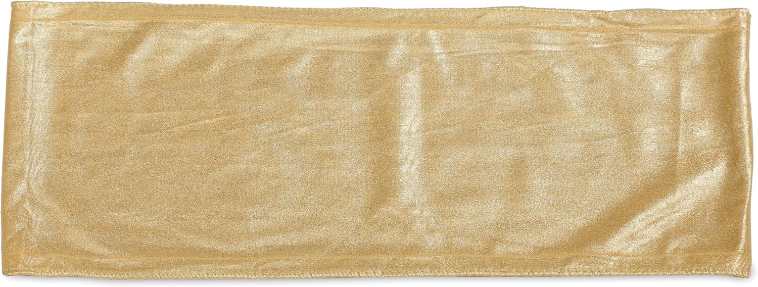 VDS Pack of 300 PCS | Metallic Gold | Spandex Chair Sashes Bows without Buckle | Stretch Elastic Banquet Universal Folding Chair Band Tie with for Wedding Party Conference Celebration Event Decoration