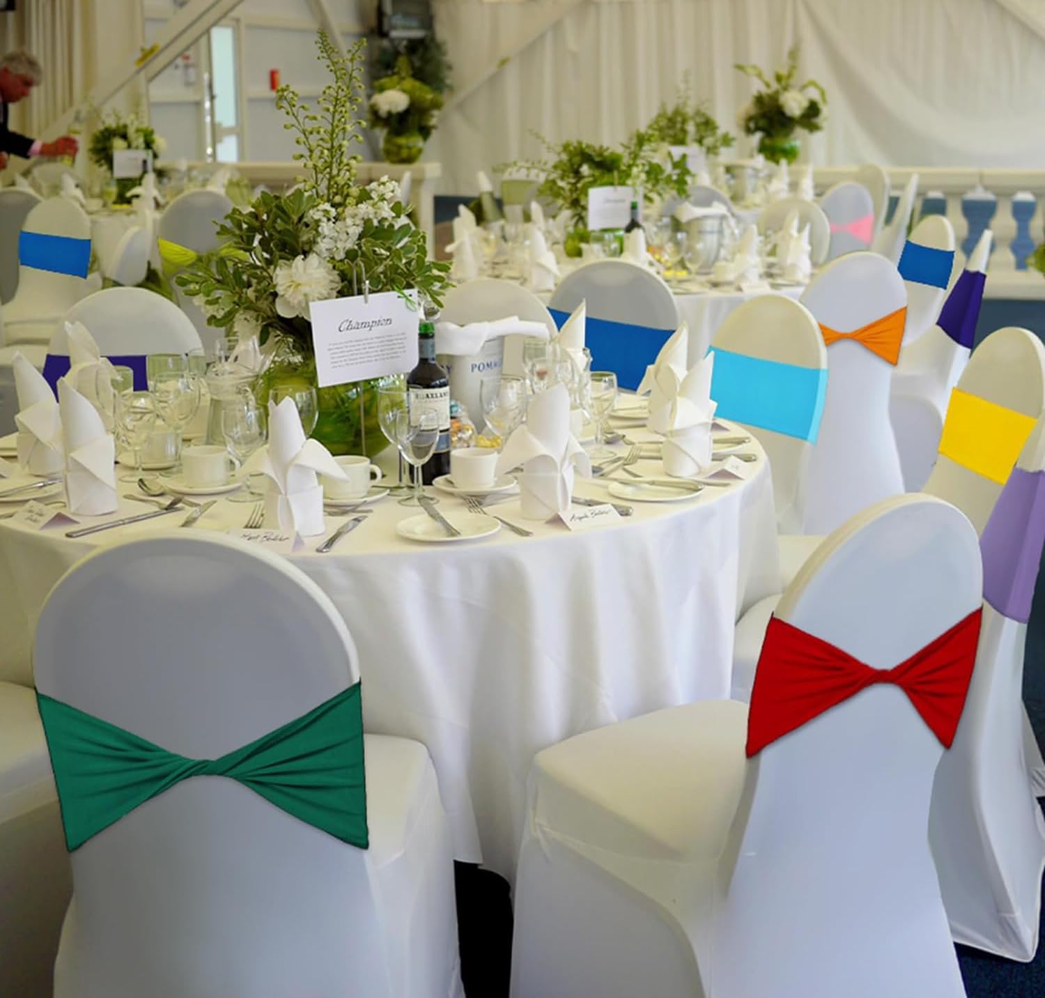 - 💚 DURABLE STRTECHY FABRIC: These chair sashes are made from high quality extra stretchy and sturdy spandex fabric which makes them durable and reusable as it can be stretched repeatedly and still recover to very near its original length and shape. Has easy covert style - normal to cross & cross to normal.
