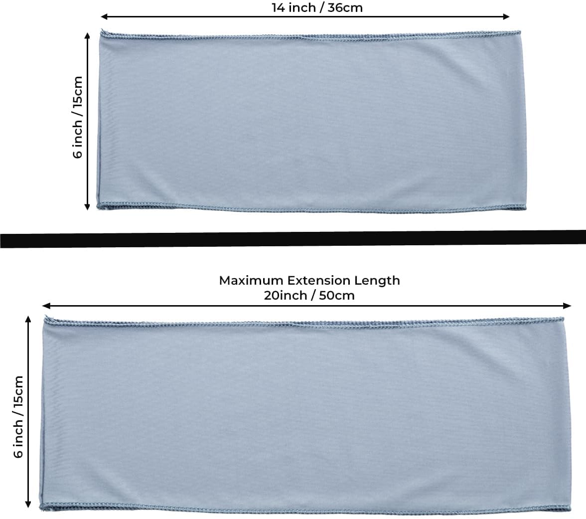 - 💚 PERFECT SIZE: High quality spandex with good elasticity, stretch to fit almost chairs. It is 90% Polyester and 10% Spandex. Size: 5.9" x 14" Or 14cm (W)*35cm(L). Fit for all type chairs (35-50CM Chair Back Width).