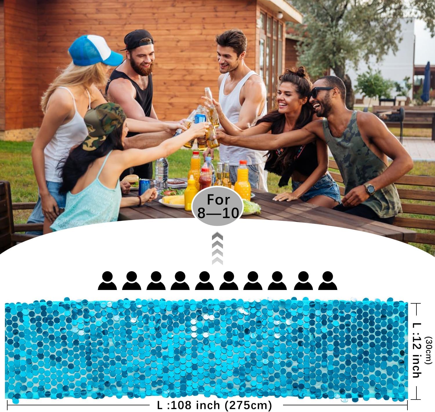 - Size: The 12" x 108" sequin table runner is suitable for tables that can accommodate 8-10 people. Great ideal for wedding table decorations for the reception.