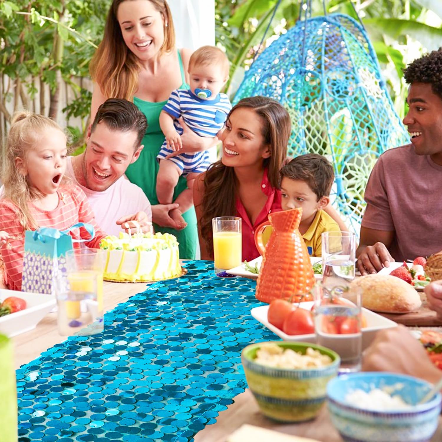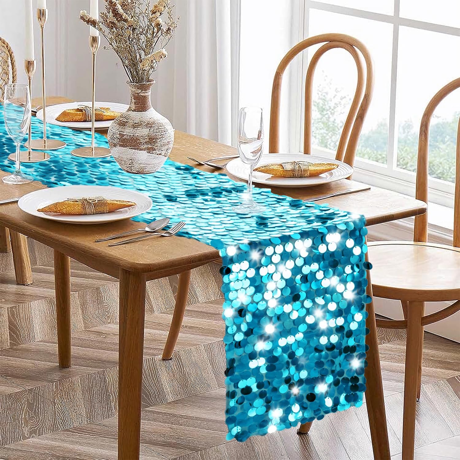 - What You Get: The package includes 1 turquoise sequin table runner.