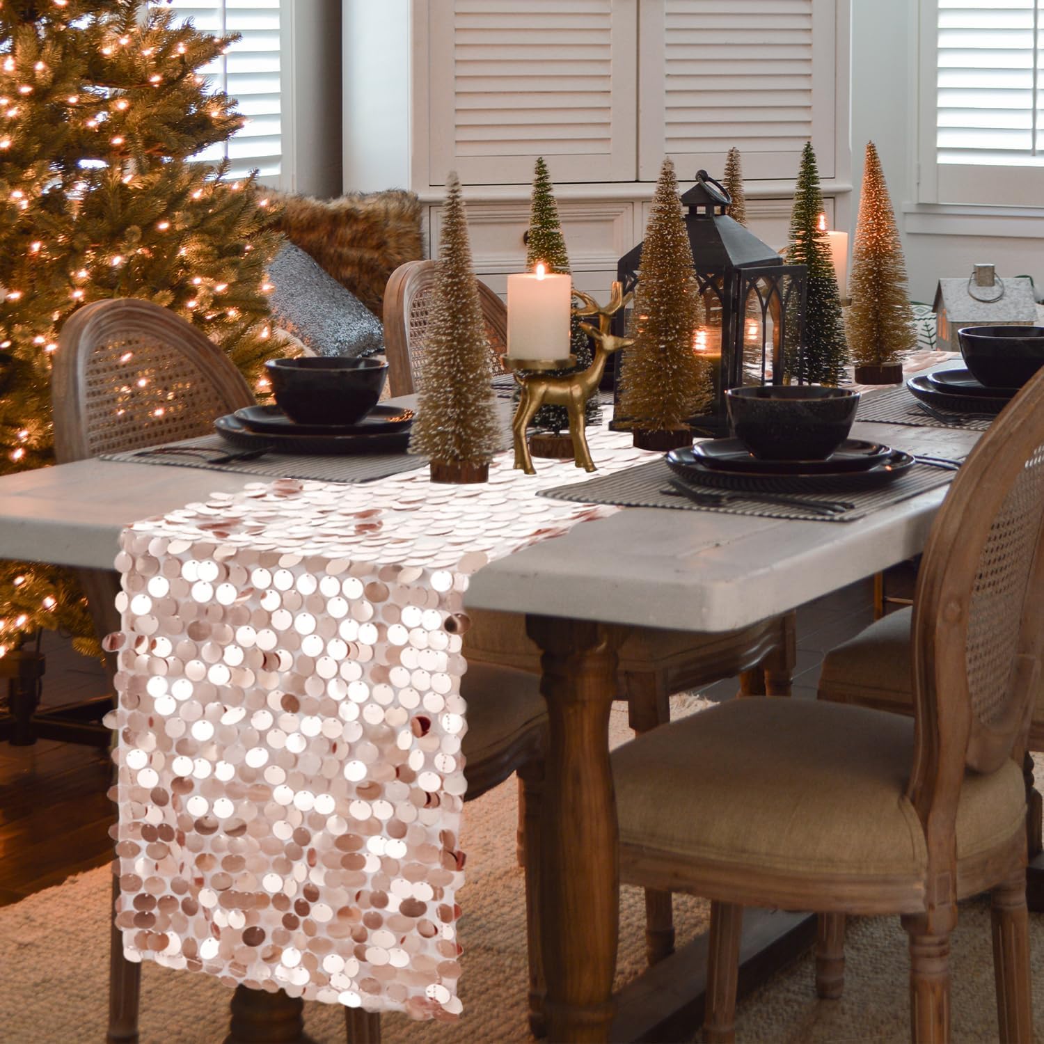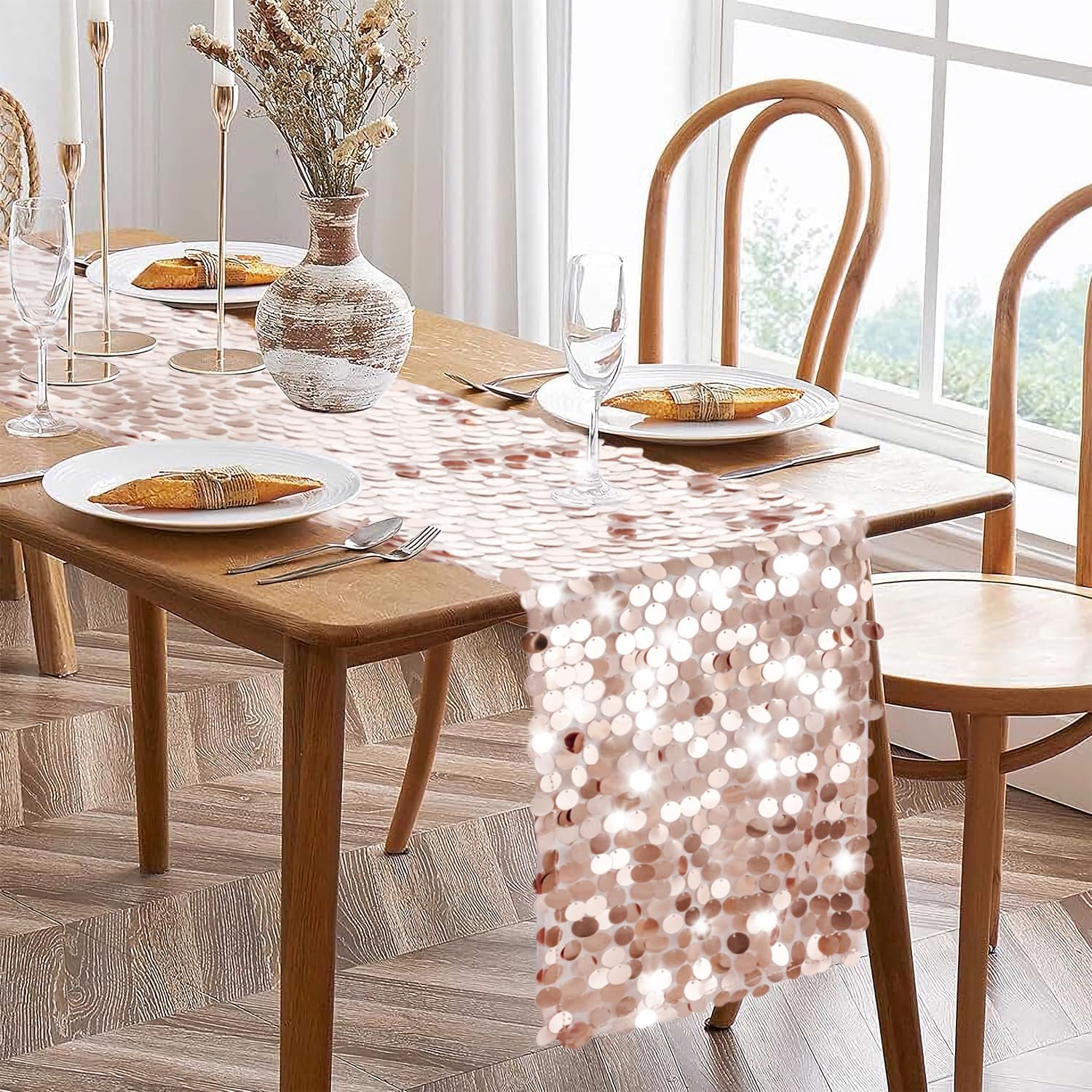 - What You Get: The package includes 1 rose gold sequin table runner.