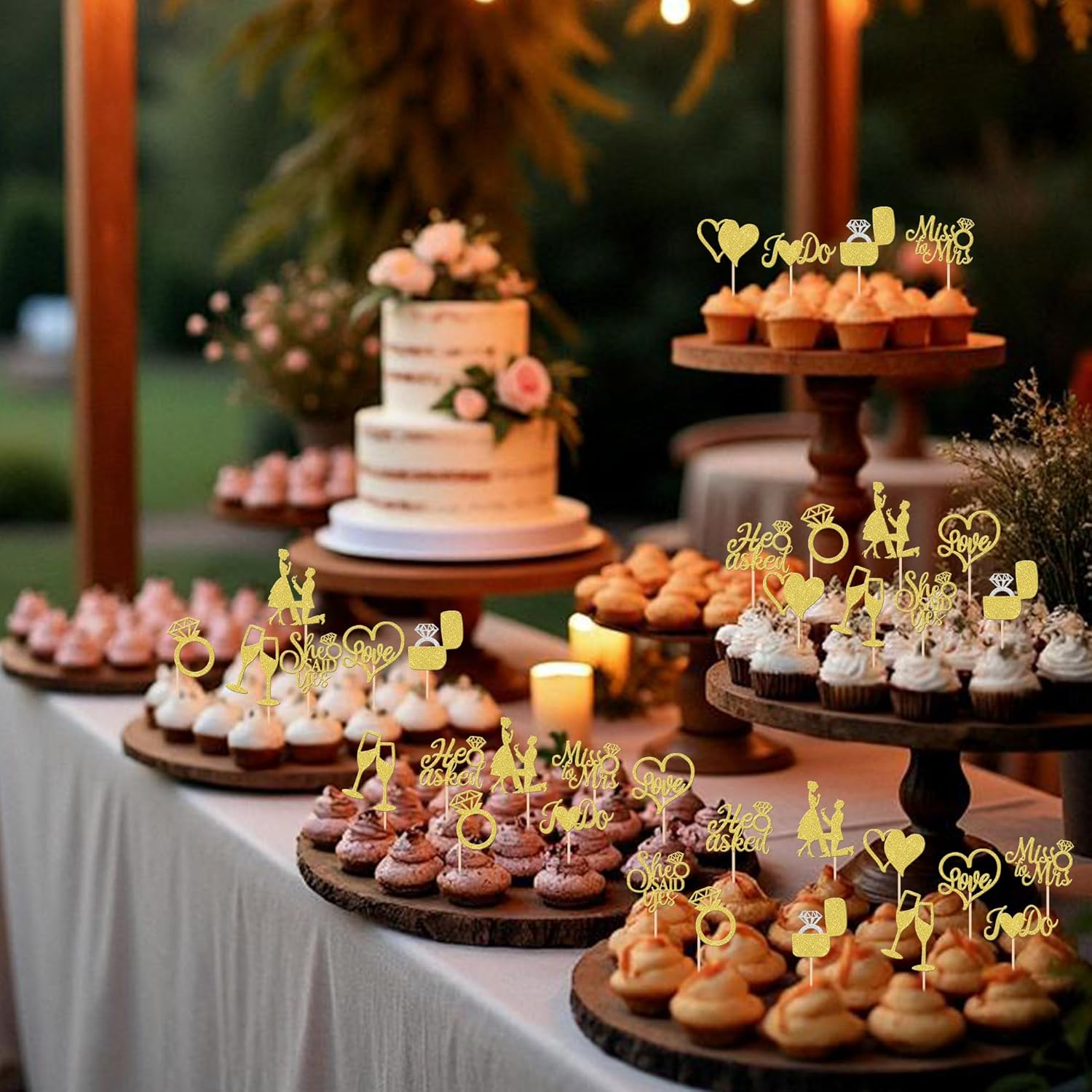 - Wide Usages ! These he asked she said yes cupcake toppers are perfect for wedding engagement theme party, he asked she said yes theme party, bridal shower theme party, miss to mrs love theme party, bachelorette theme party cupcake decorations, they can make your cupcake more attractive and bring the fun to your party.You can also apply them for ice cream, fruits, cookies and other desserts.