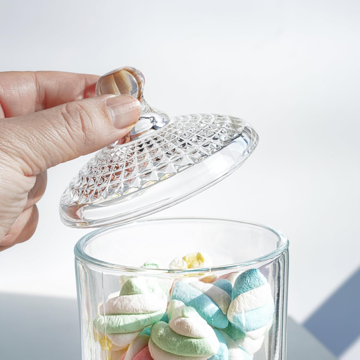 - Versatile and Stylish: These clear Storage jars are both functional and decorative, ideal for organizing restroom supplies, bathroom accessories, dresser items, or office essentials. Perfect for any space—bathrooms, bedrooms, kitchens, or offices.