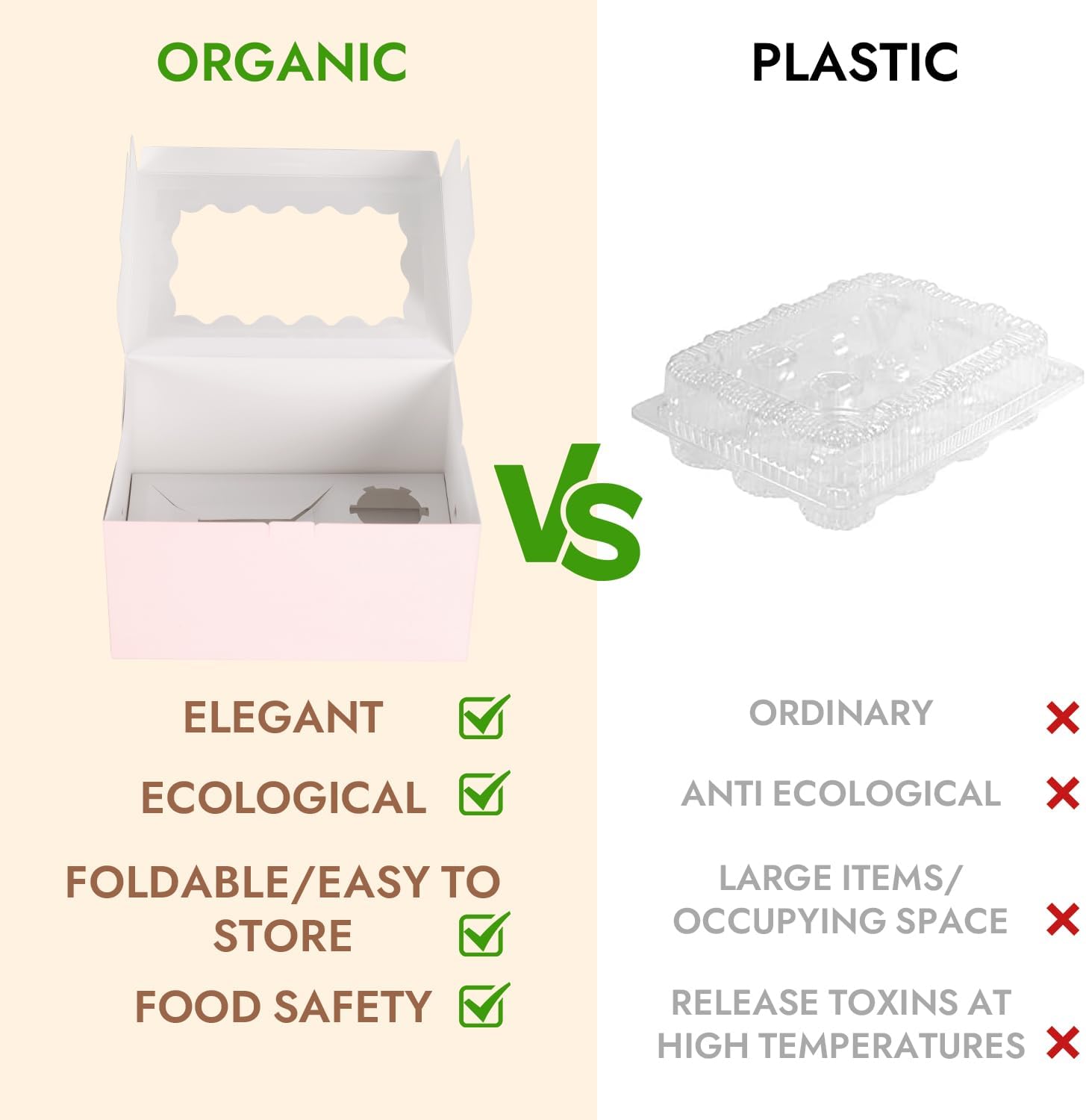 - Package Includes:8 Packs Cake and Cupcake Box Combo with Clear Window.cupcake boxes + inserts+ Stickers.The paper inserts keep the cupcakes stay in place from moving around. The cake box has a wide viewing angle, perfect for showcasing cakes while protecting them. It is a great choice for making cupcakes and pastries.