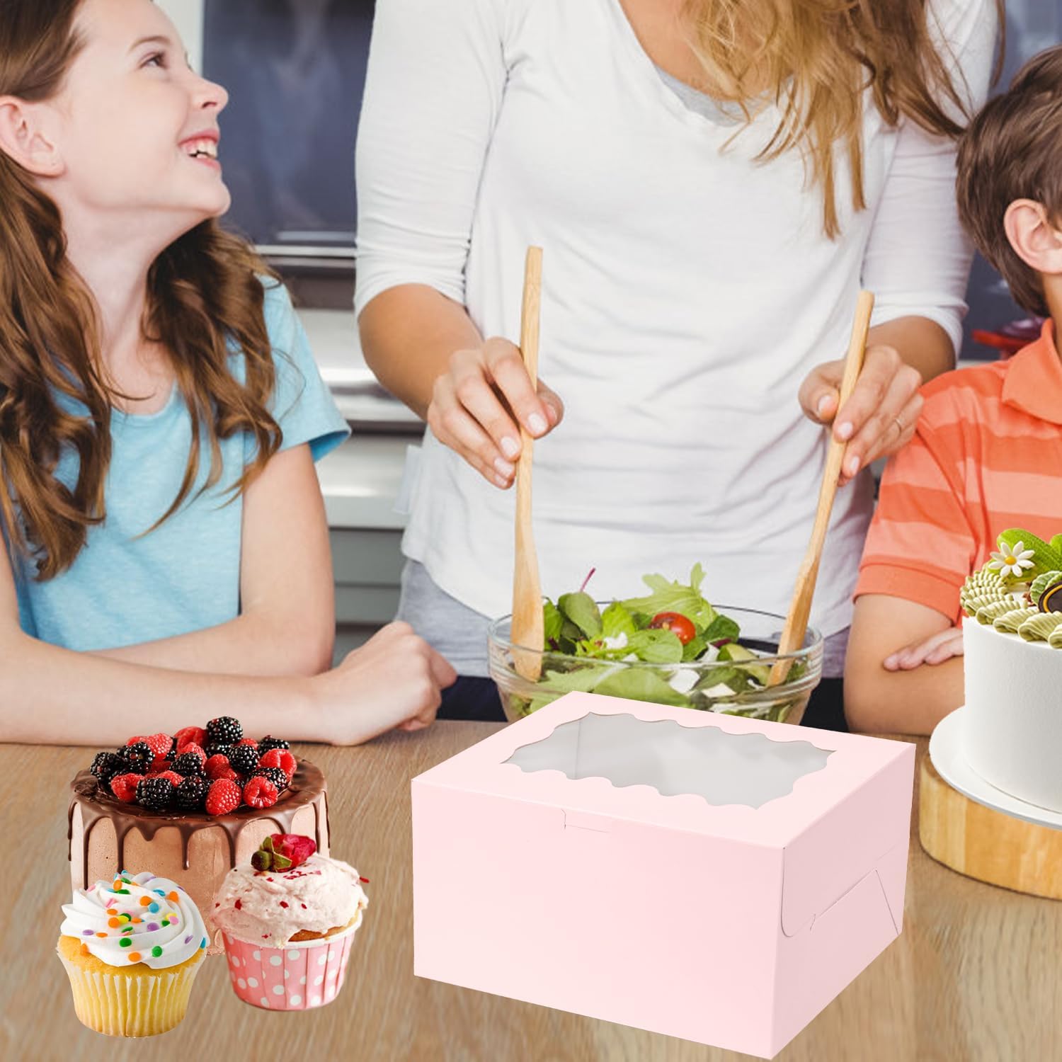 JCD 8Pcs Pink Cake Cupcake Combo Boxes Clear Lid with 2 Cupcake Holes -Clear Window Bento Cake Boxes for Bakery Baking Supplies(Pink 1+2/8Pcs)