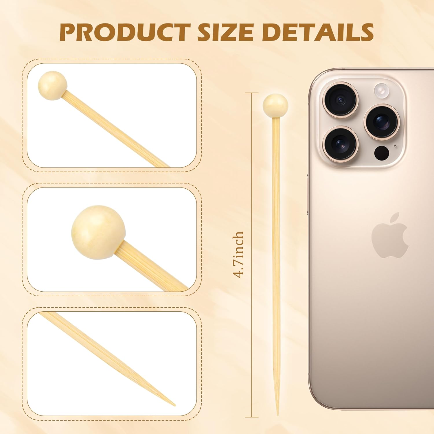 - Sturdy And Long: Appetizer skewers are made of high-quality natural bamboo, the surface is smooth and burr-free, and the wooden ball at the end makes it easier to hold and gives you a comfortable feeling of use.Compared to plain toothpicks, ours are sturdy and long enough to not break easily and you can insert various foods more easily.