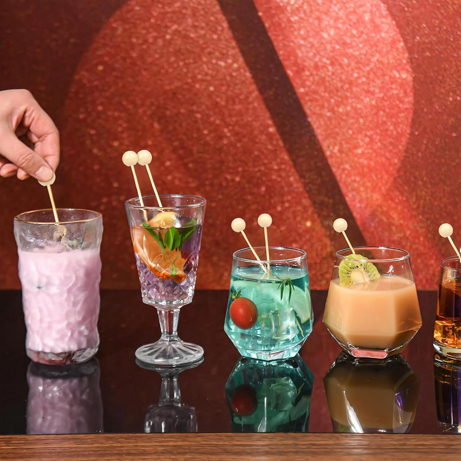 - Special Decorative: The cocktail toothpicks has wooden ball decoration on the top,not like simple and lackluster cocktail toothpicks.Such special amazing cocktail skewers make your appetizer, dessert and drinks presentation stand out, make you and your friends enjoy party.