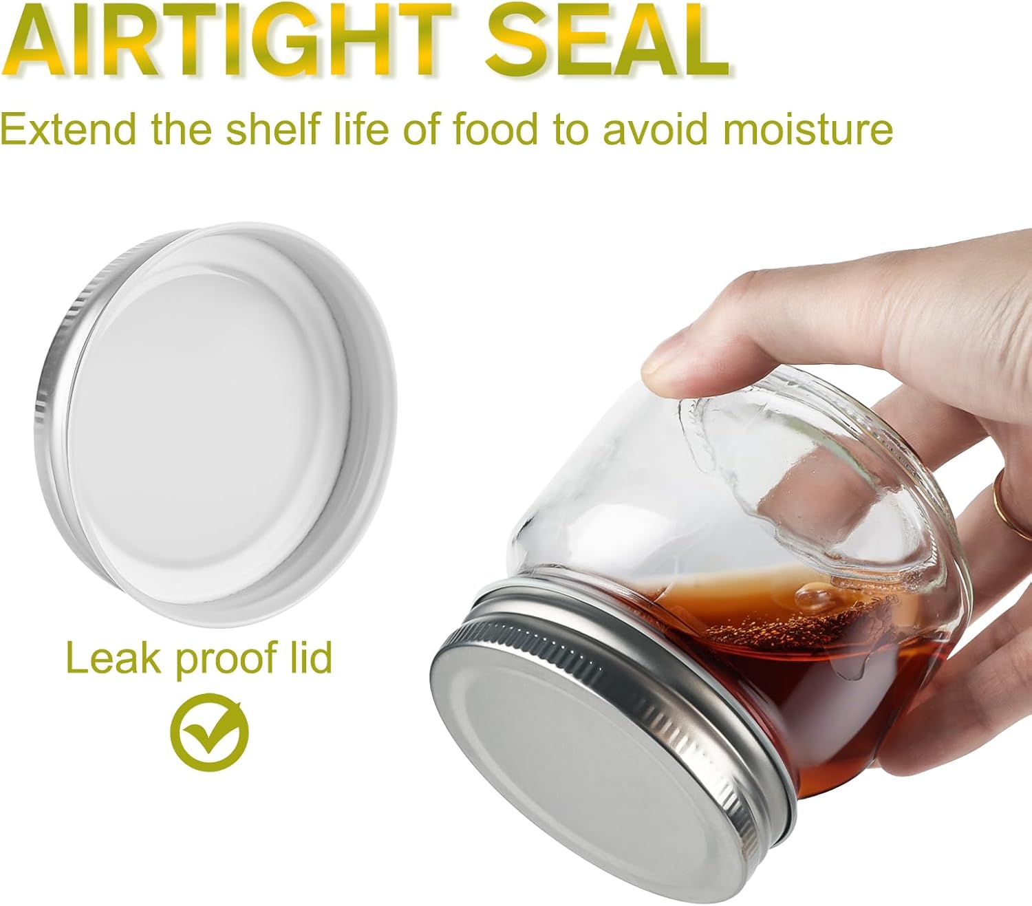 - Sealed and Leak-proof: Each jar comes with a time-tested sealing ceiling compound that ensures the sealing quality of each lid, making it perfect for preserving and canning. Safe for the refrigerator and freezer. Wide mouth is easy to grip and clean, suitable for storing food, convenient for our daily life.