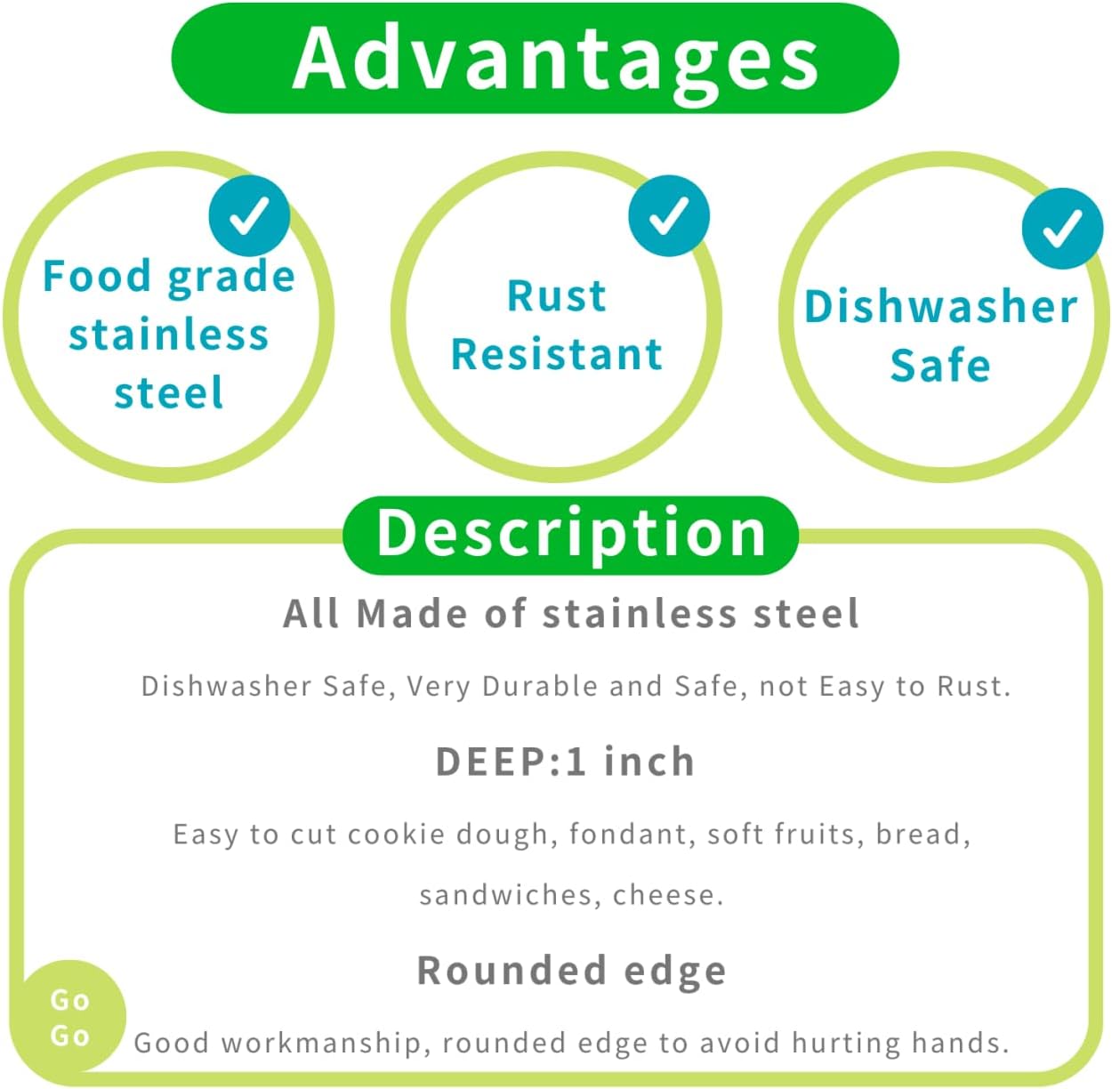 - Deep 1-Inch Design for Precision Cutting— Cuts cleanly through cookie dough, fondant, soft fruits, and sandwiches. Rounded edges protect hands, while the sturdy design prevents bending.