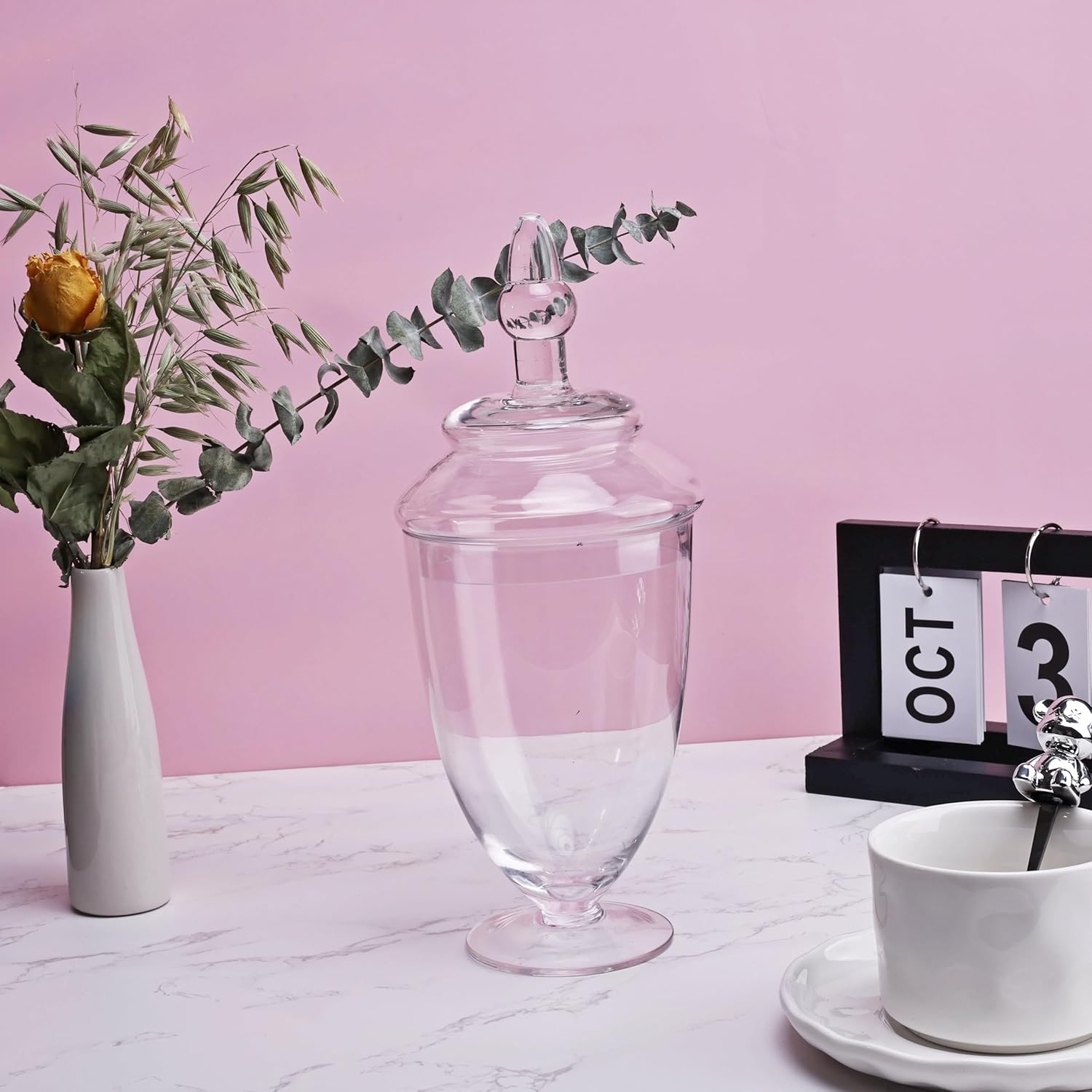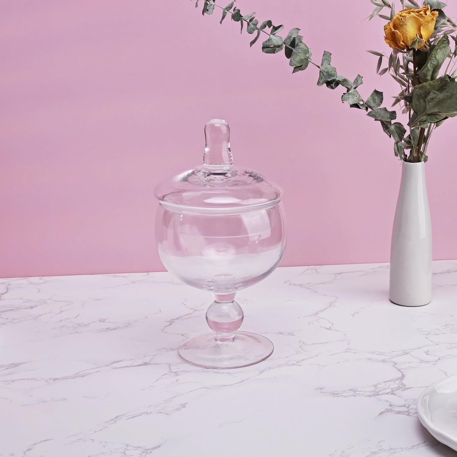 - MODERN ELEGANCE: These glass apothecary jars with lid are perfect for a variety of settings, from bathroom and kitchen storage, to home and venue decoration, garden floral and glass container displays and more. The uses for these decorative glass jars are endless!
