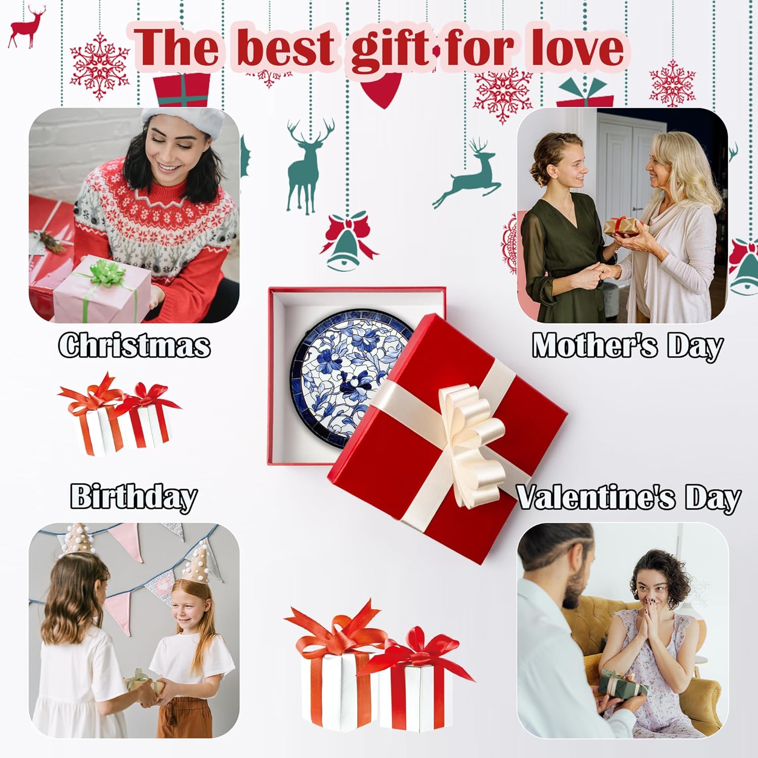 Stained Glass Window Hanging, Blue and White Abstract Flowers Sun Catcher for Door Home Decor Suncatcher Christmas Mother's Day Birthday Gifts for Women Men Mom and Nana 7.8 in