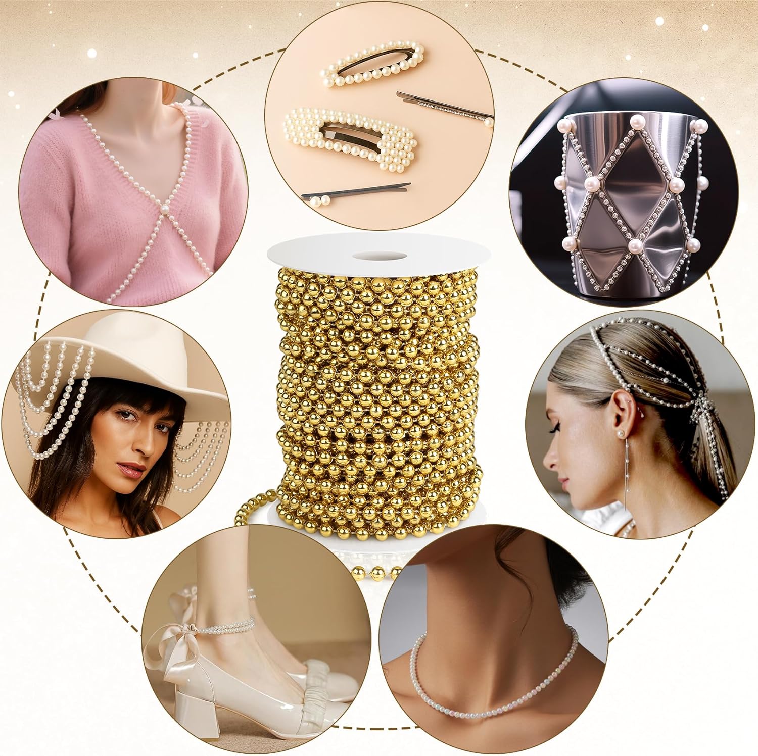- Wide Applications: The pearl string is perfect for DIY crafts and decorations such as DIY jewellery, hair accessories, clothing, shoes, cards, scrapbooking, bridal bouquets, tiaras, wedding wreaths, wedding backdrops, flowers, porches, tables, chairs and more