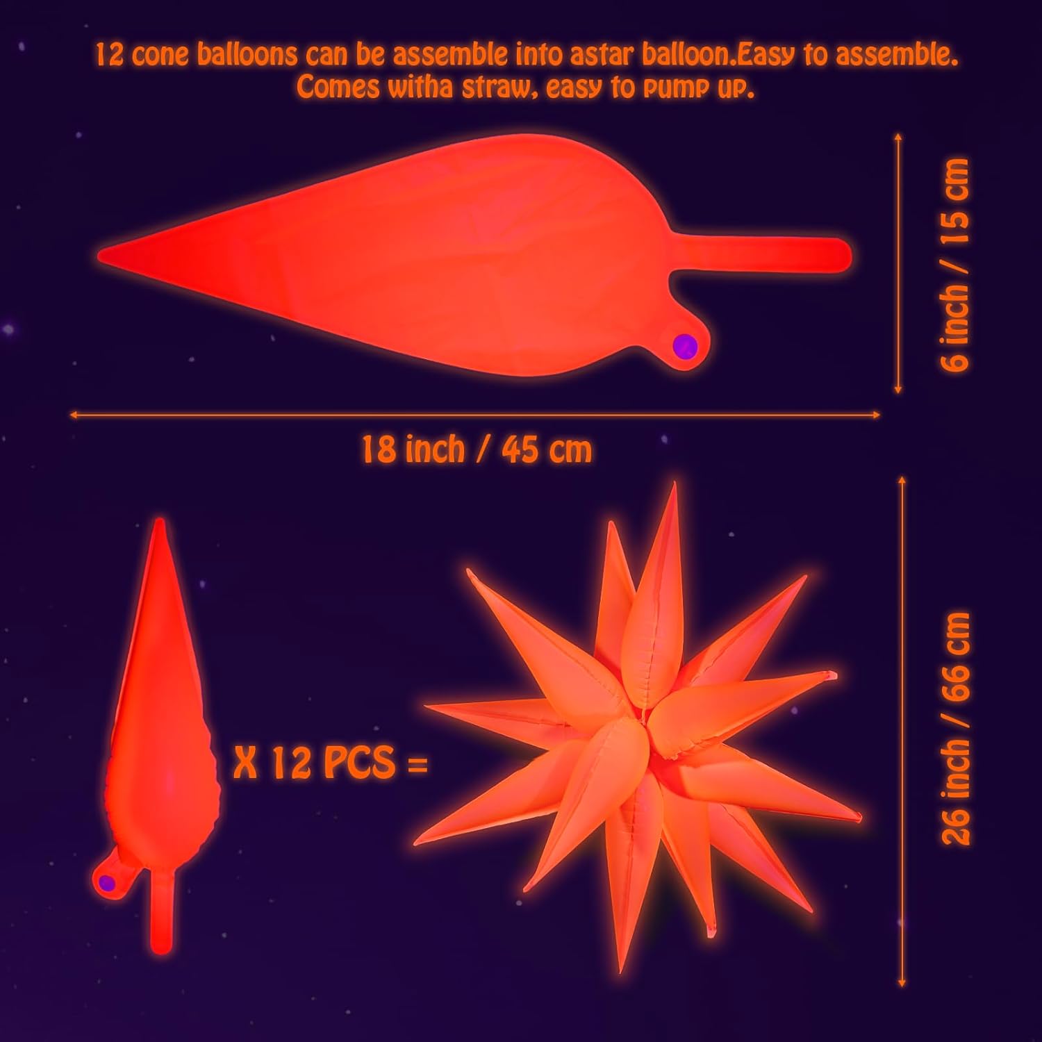Mega-L Glow Glow in The Dark Party Supplies, 5 Pcs Neon Star Balloons Kit – Neon Foil Explosion & 12 pt Cone Balloons for Arches/Garlands. Perfect for Birthday, Wedding, Anniversary, Graduation Party