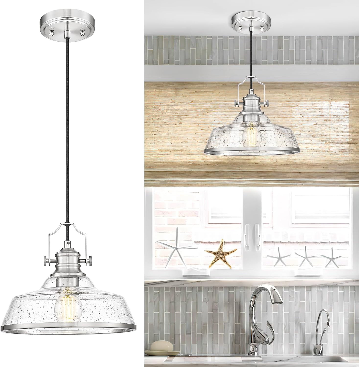 - Adjustable Chain: Customize the hanging length of these farmhouse kitchen lighting (up to 59-inch of wire) to perfectly suit any space, from low kitchen islands to high restaurant ceilings.